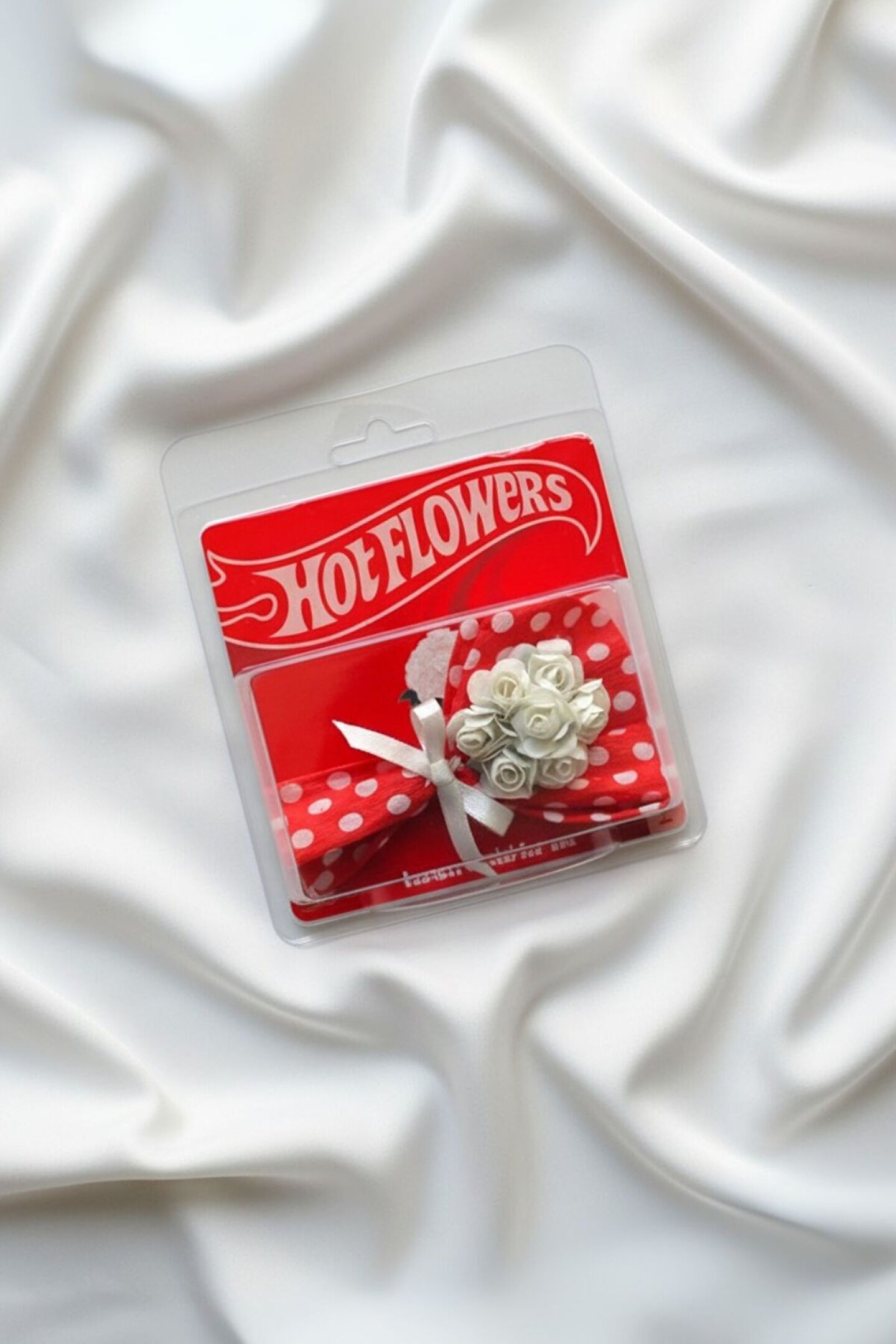 Gorgeous tarafından özel olarak tasarlanan bu koleksiyonluk aksesuar kırmızı ve beyaz tonlarının hâkim olduğu, özenle hazırlanmış yapay çiçek buketi ve şık süslemeleriyle dikkat çeker.; Ürün, görsel bütünlüğü bozulmadan sunulabilmesi için şeffaf koruma kutusu içerisinde ambalajlanmıştır.; Hem hediye olarak doğrudan sunulabilir hem de dekoratif amaçlı estetik bir tamamlayıcı unsur olarak kullanılabilir.;