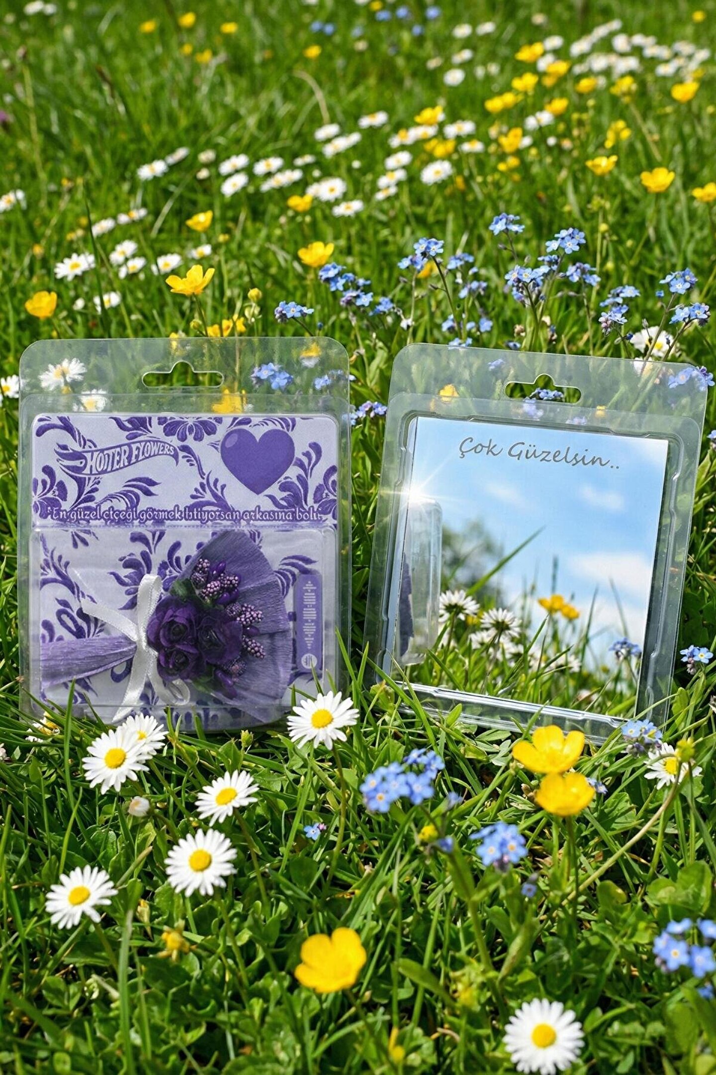 Minik Buket Sevgililer Günü Hediyesi Hotter Flowers Özel Tasarım Aynalı Mor Gül