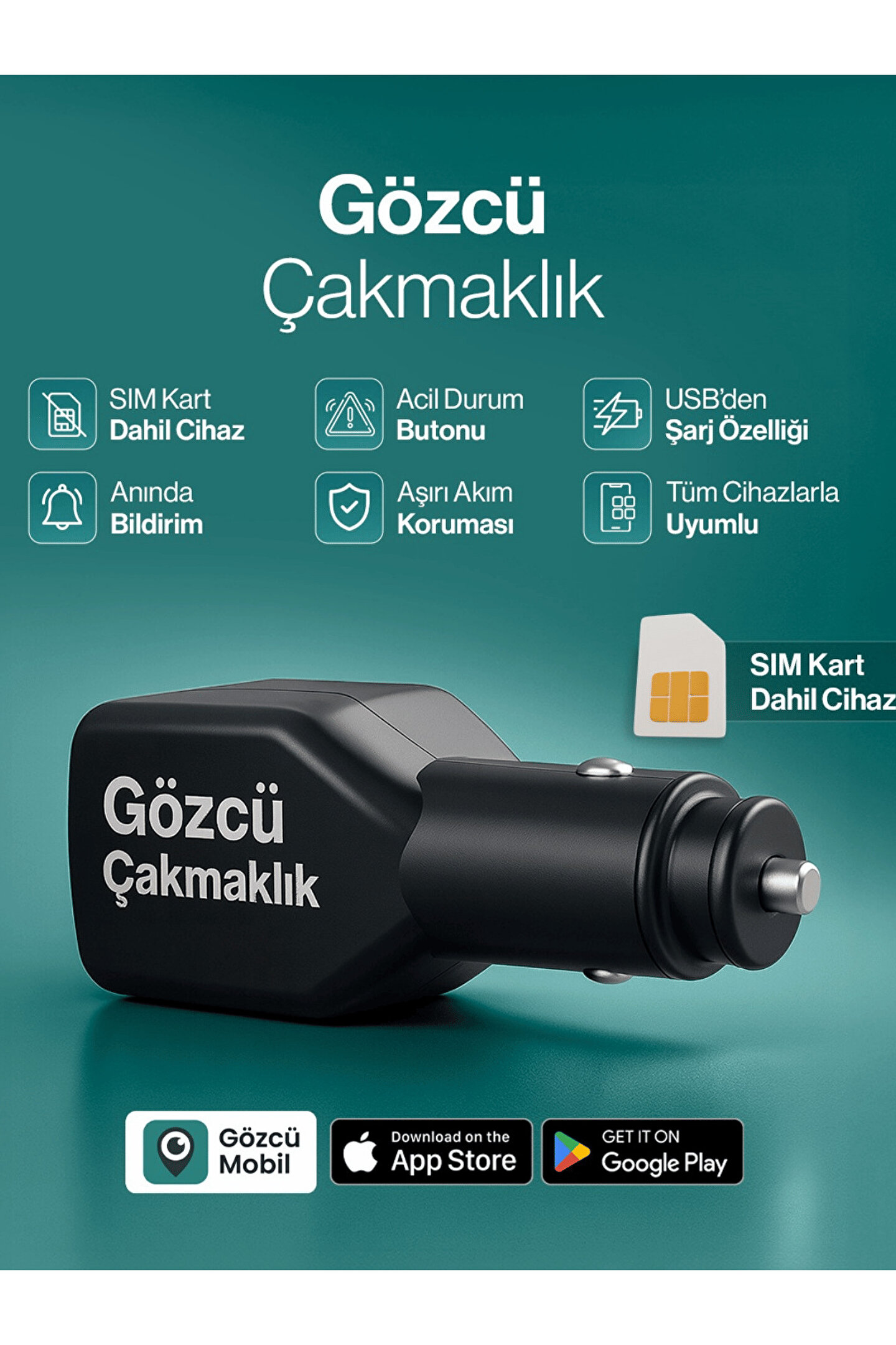 Aracınızın güvenliğini ve nerede olduğunu anbean bilmek hiç bu kadar kolay olmamıştı! Gözcü Çakmaklık, sıradan bir araç şarj aleti görünümünde, montaj veya kablo gerektirmeyen, yeni nesil bir GPS takip cihazıdır. Sadece aracınızın çakmaklık girişine takın ve Gözcü Mobil uygulaması üzerinden anında takip etmeye başlayın.