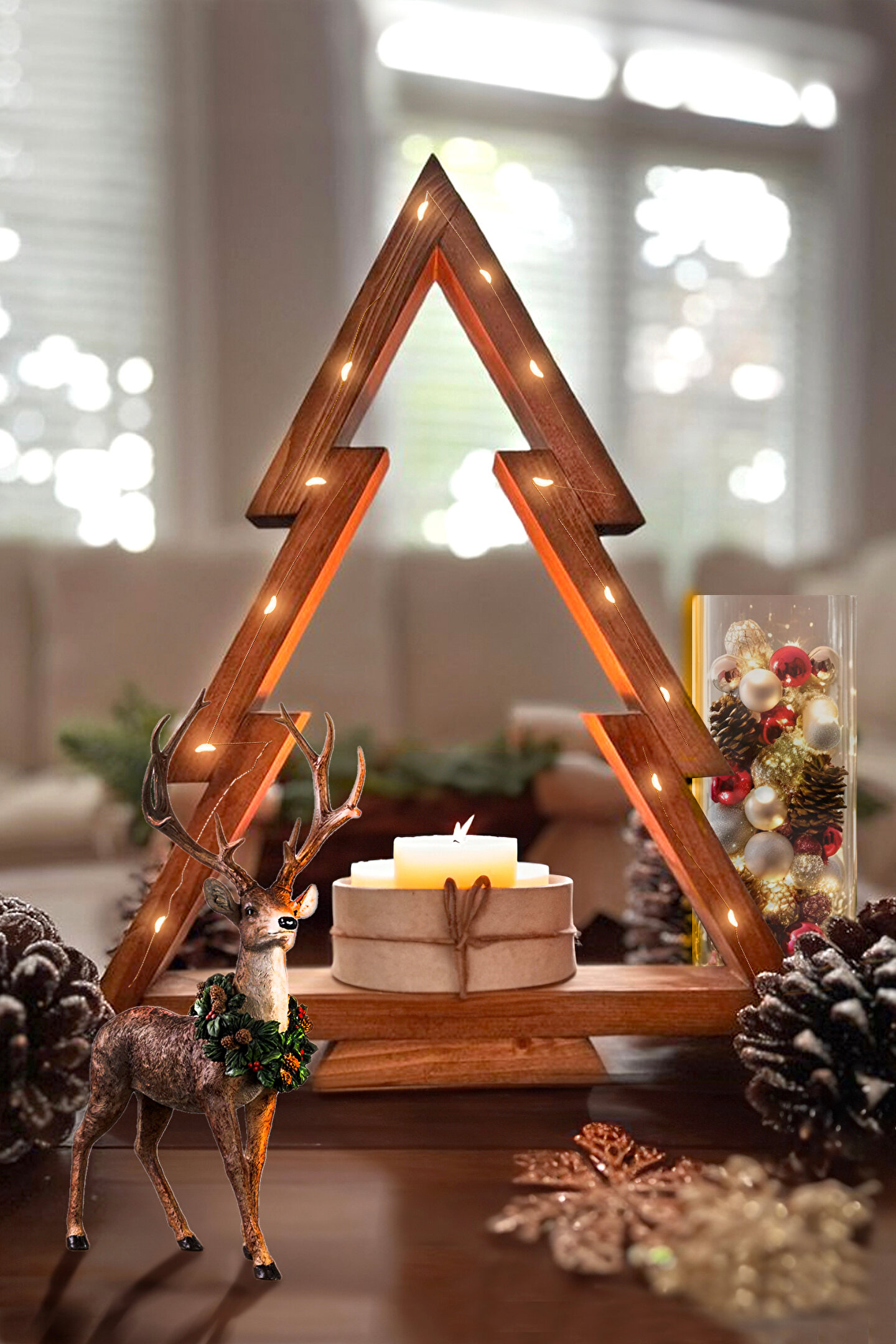 Ahşap Dekor,yeniyıl Ağacı,dekoratif Yılbaşı Ağacı 30cm