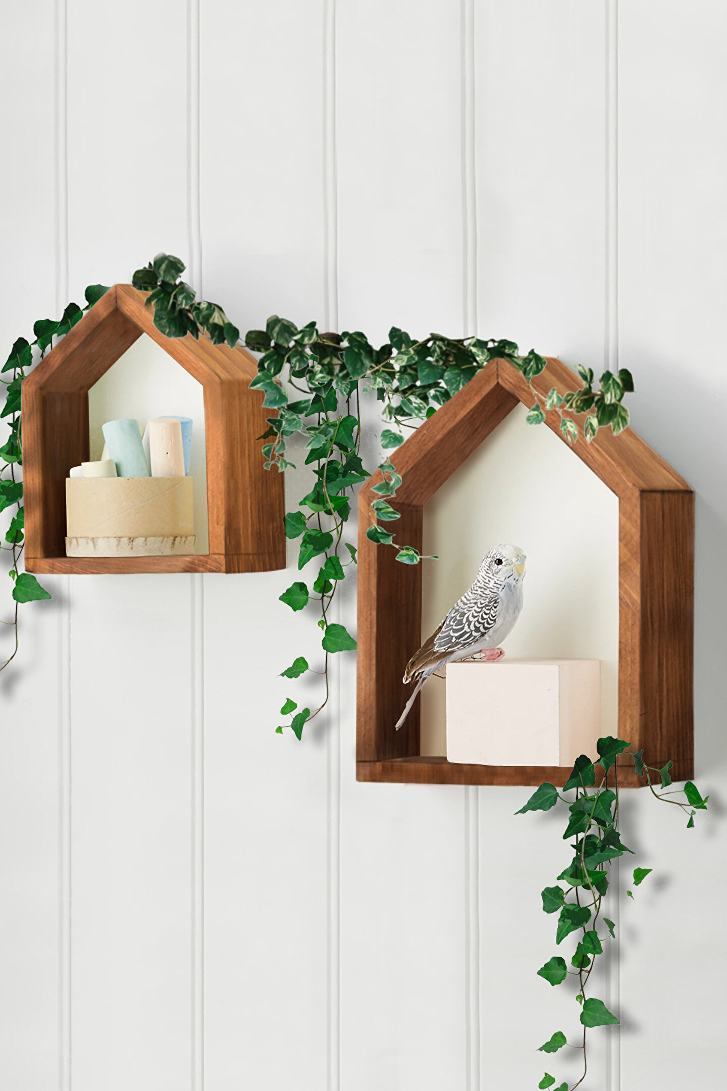 Ahşap Duvar Rafı 2li Ev Şeklinde