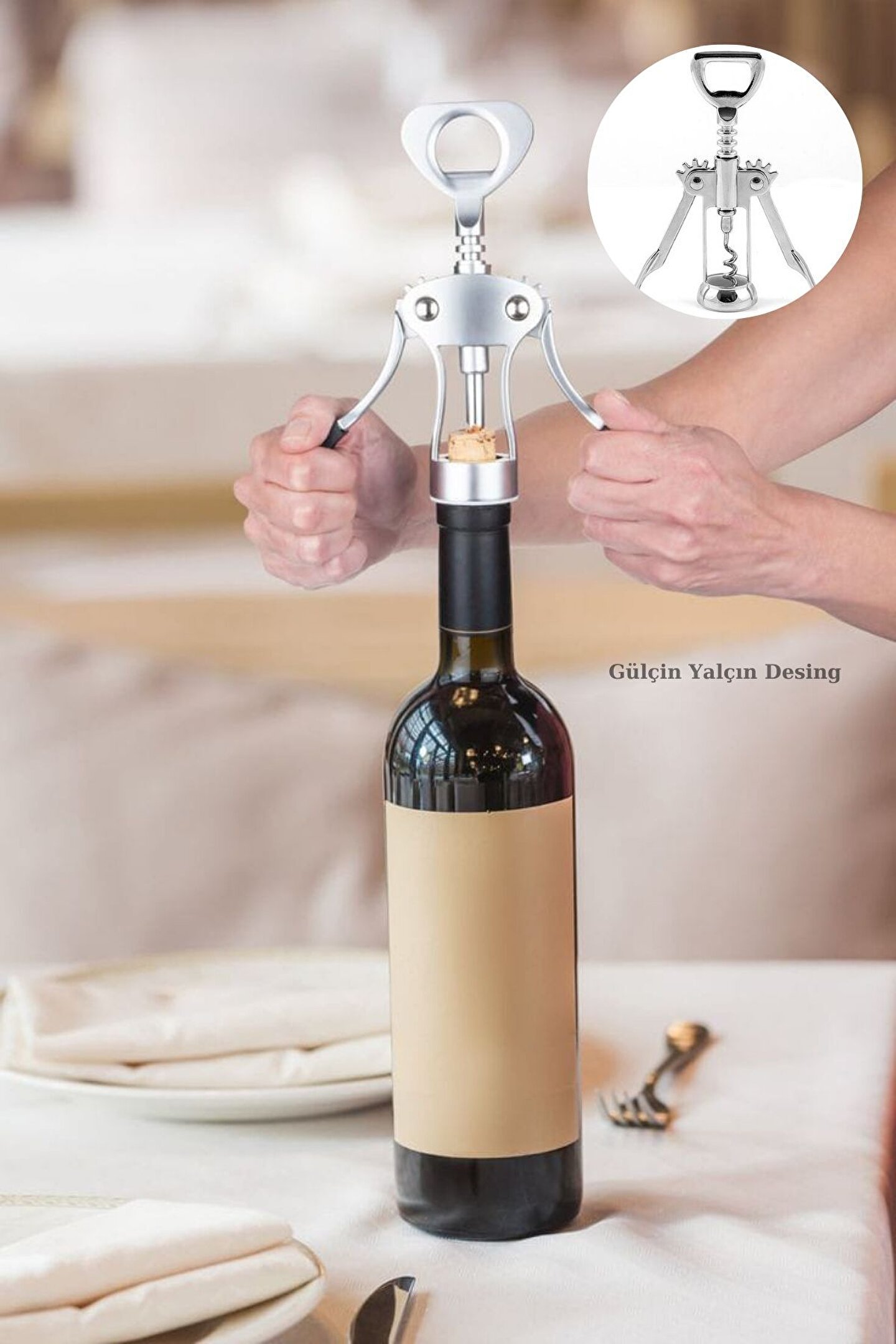 Gülçin Yalçın 2 İn 1 Yüksek Kalite Krom Tirbuşon Metal Türbişon Şişe Açacağı