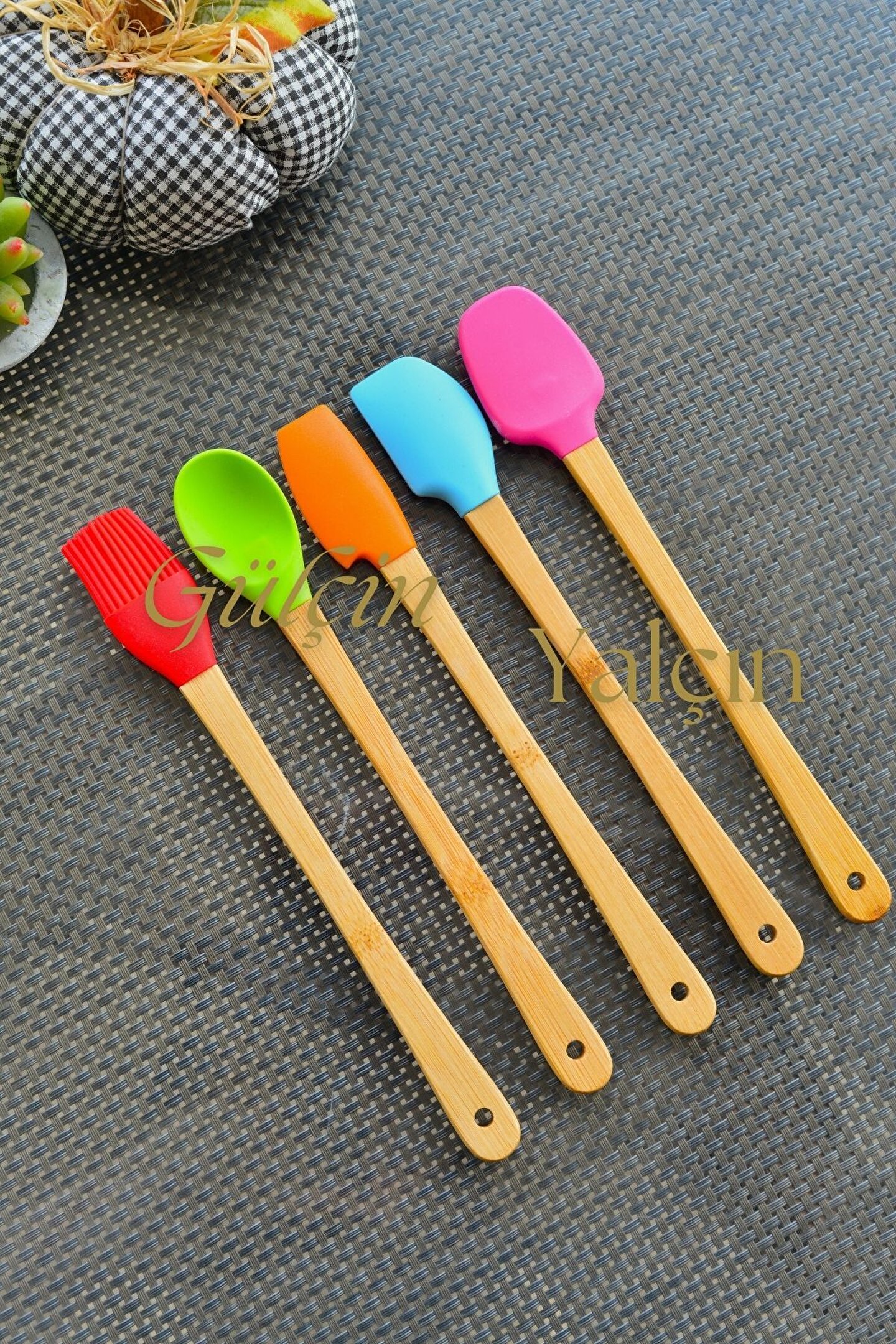 5 li Mini Bambu Spatula Seti Görseldeki gibi 5 renk olarak gönderilir Ebat : 23x3,5 Cm Ebattan anlaşılacağı gibi ürünümüz mini boydur. ; Ürün sapları ahşap değil, 1. ; sınıf kalite Bambudur. ; BPA içermeyen rengarenk silikon uçları ve masif bambu saplarıyla her zaman elinizin altında olacak. ; Silikon malzemesiyle tencere ve tavalarınızı çizmeden rahatlıkla kullanabilirsiniz Dar ağızlı kavanozlar için kullanımı rahattır. ; Uzun ömürlü kullanım için elde yıkama tavsiye edilir. ; Yüksek ısıya dayanıklıdır. ; Gıda ile teması uygundur;