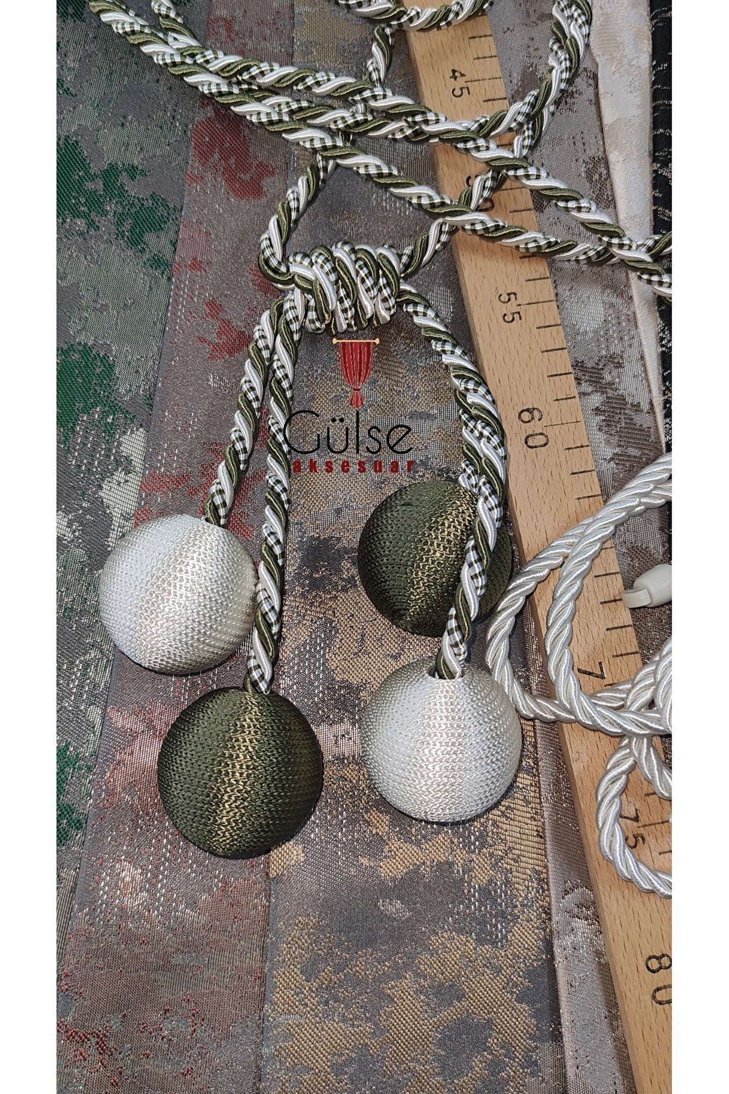 İki adet 4'lü set halinde sunulan haki yeşil krem tavan braçol, perde aksesuarlarınız için şık ve fonksiyonel bir çözüm sunar; Polyester materyali sayesinde uzun ömürlü kullanım ve kolay temizlik imkanı sağlar; Perde bağı olarak tasarlanmış bu ürün, perdelerinizi sabit tutarak estetik bir görünüm kazandırır;