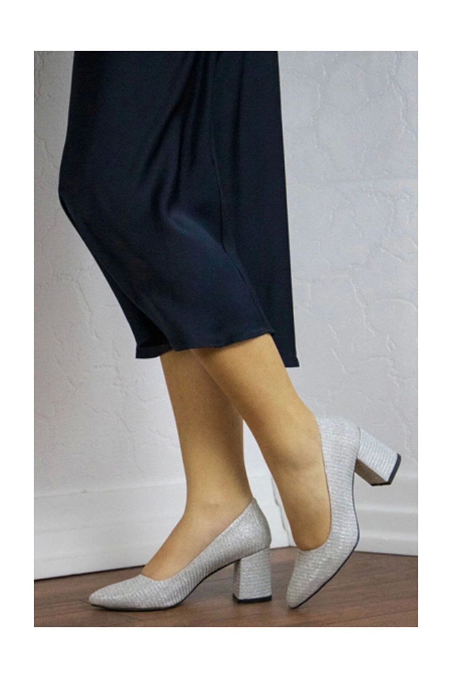 Kadın Sivri Burun Parlak Gece Ayakkabısı Gümüş
