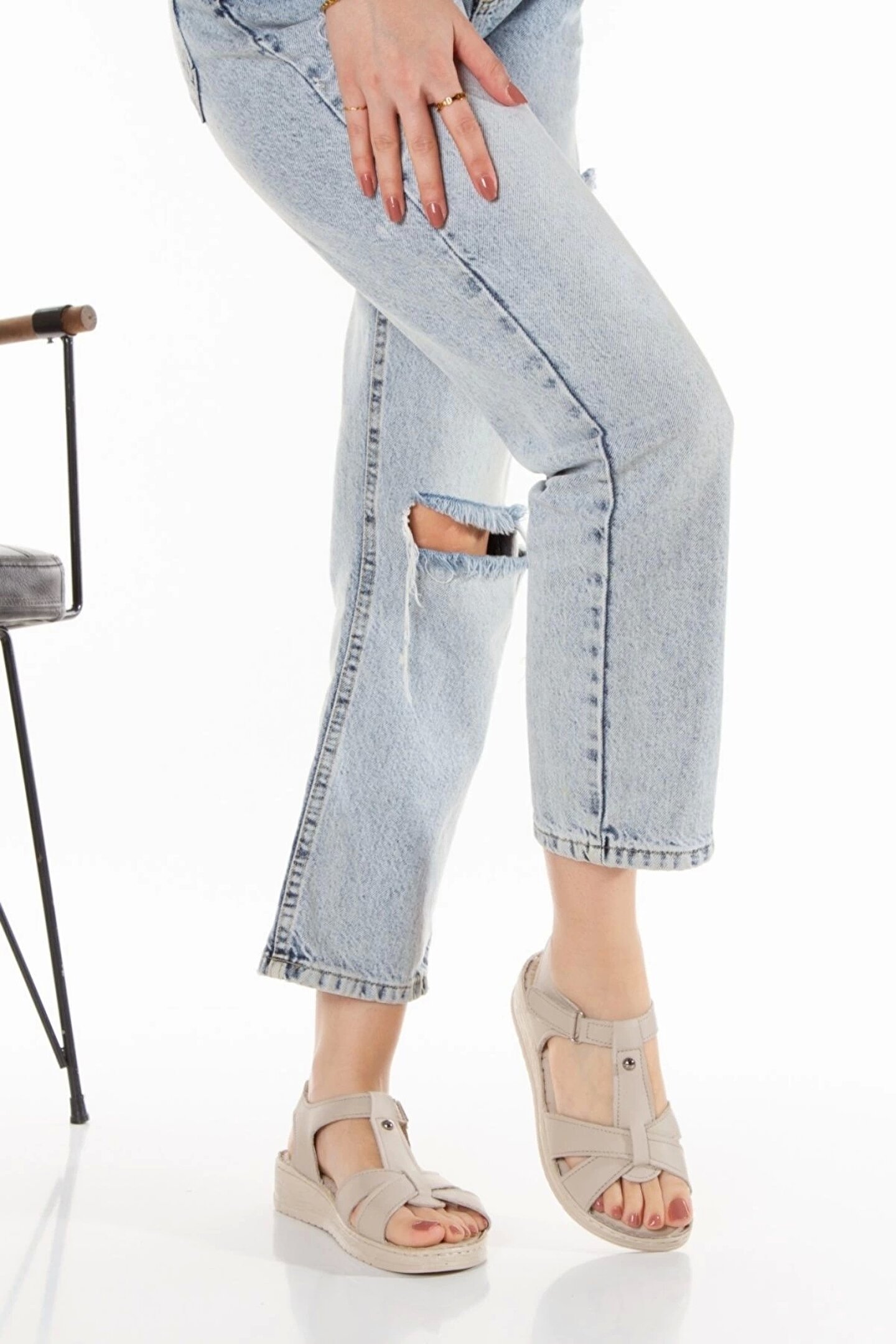 LAMIA Cırt Cırtlı Ortopedik Taban Kadın Sandalet CKT - Krem