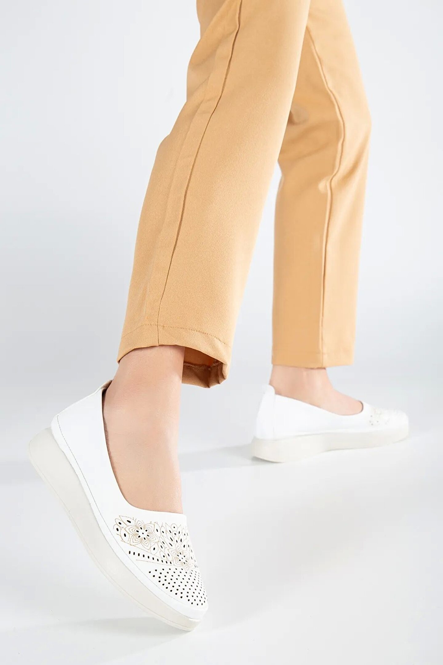 JY154 Blaze Bağcıksız Püsküllü Cilt Erkek Günlük Spor Klasik Ayakkabı CBT - Beyaz