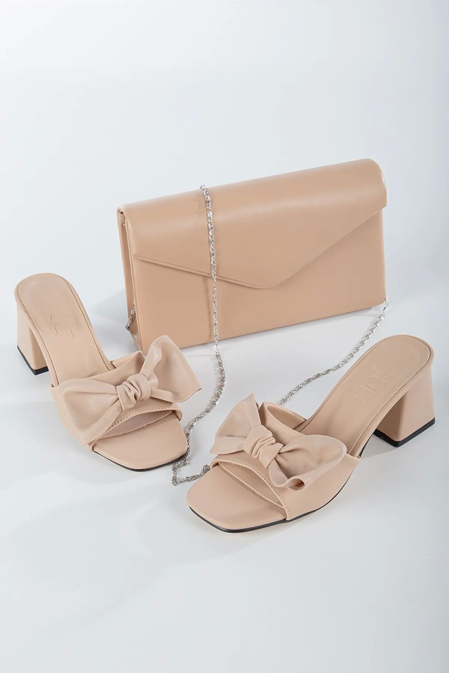 Kadın 5 Cm Kalın Topuklu Çanta Kombinli Terlik Takımı