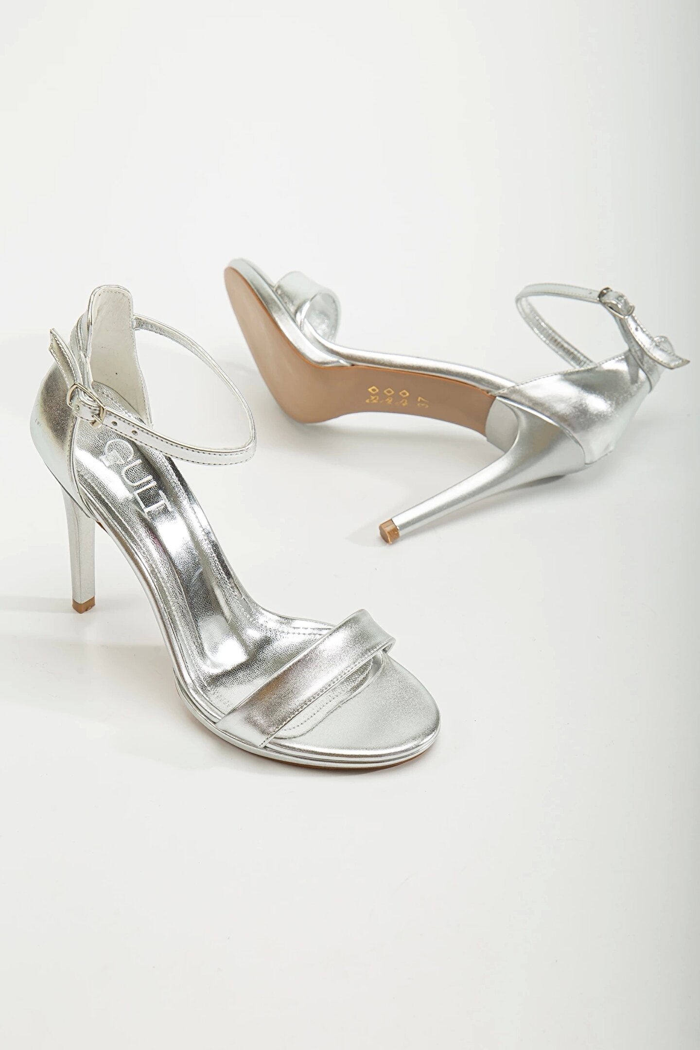 Kadın Sivri Burun Parlak Gece Ayakkabısı Gümüş