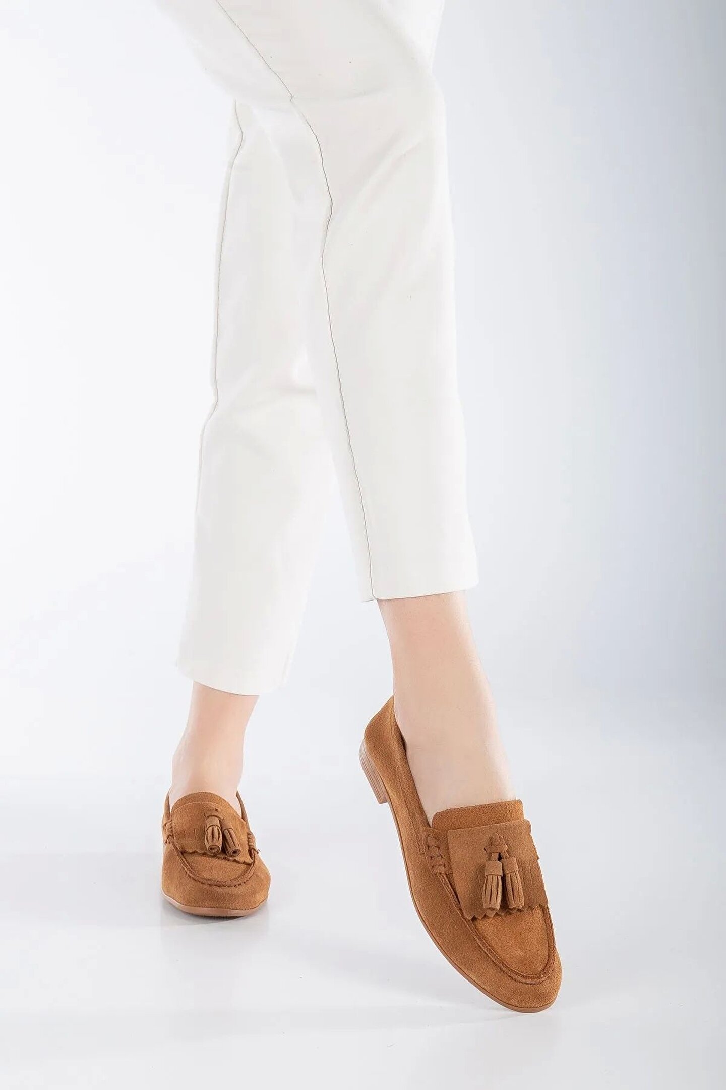 JY154 Blaze Bağcıksız Püsküllü Cilt Erkek Günlük Spor Klasik Ayakkabı CBT - Taba