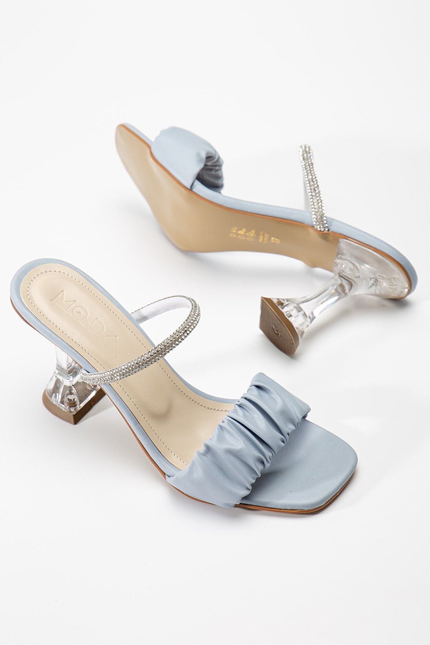Kadın Ince Şeffaf Topuklu Muaddi Terlik Mavi
