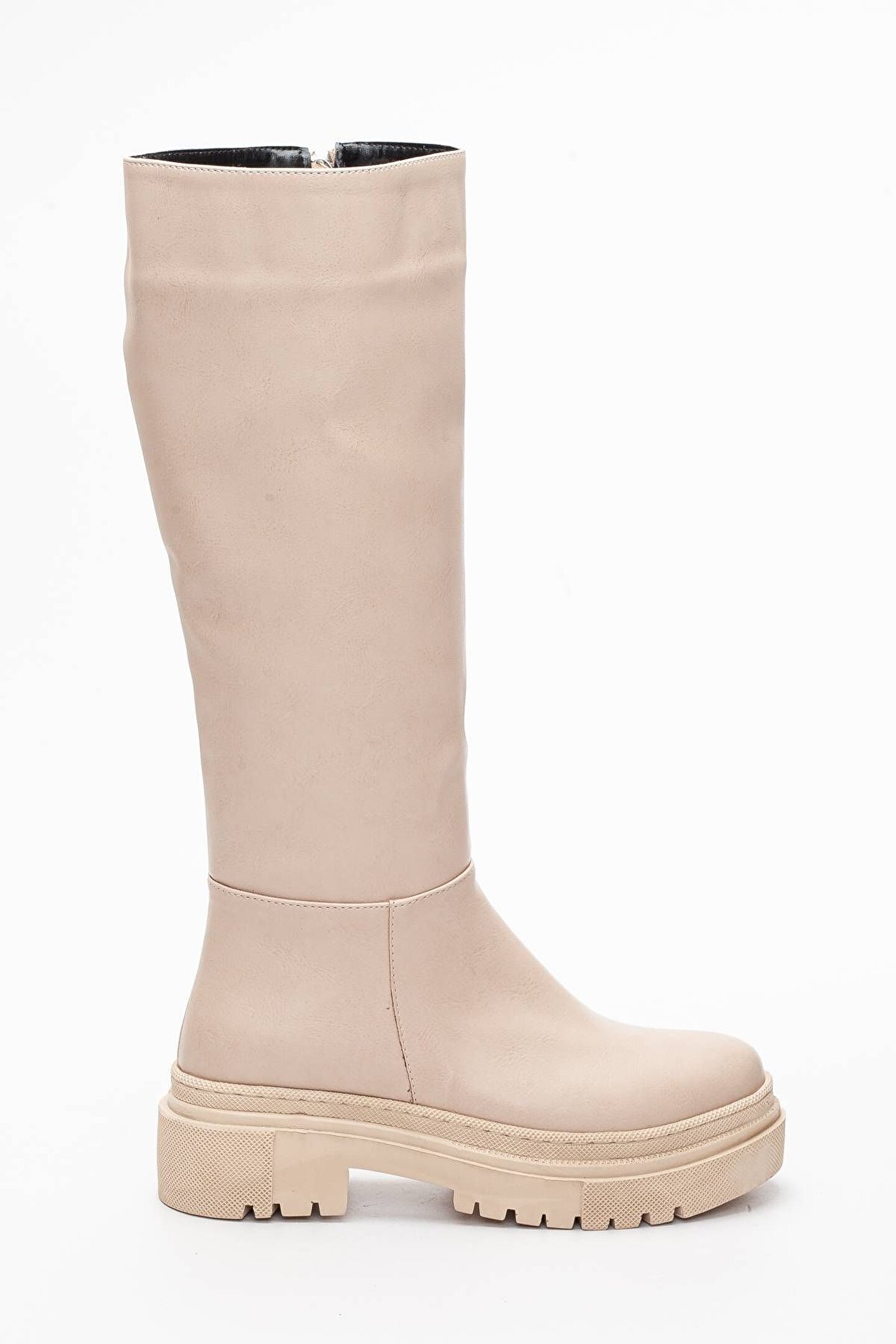 Kadın Kalın Tabanlı Günlük Tarz Nude Renk Çizme