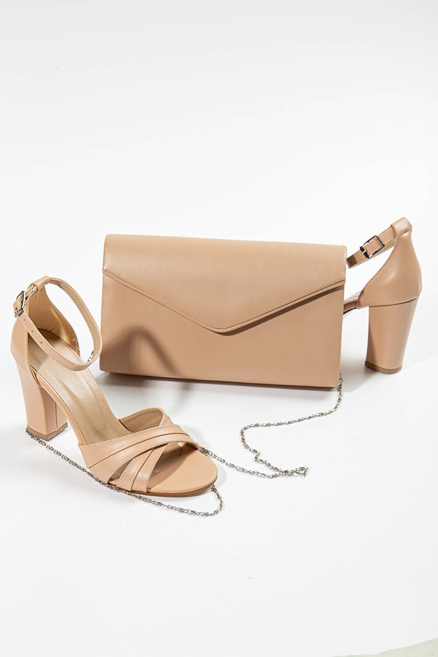 Kadın Kalın Yüksek Topuklu Ayakkabı Ve Çanta Takımı Nude