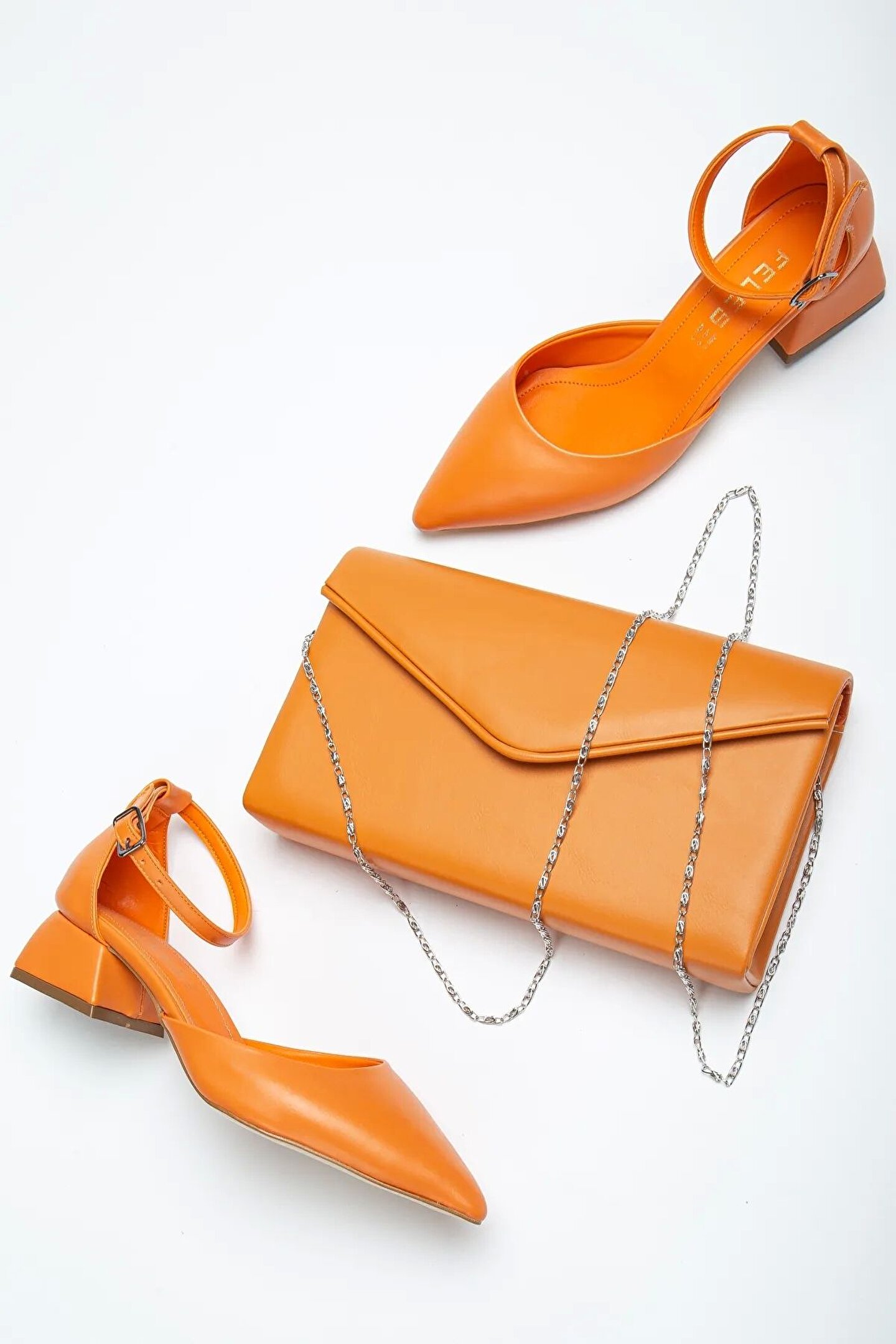 Kadın KOMBİNLİ 3 cm Topuklu Günlük Yazlık Ayakkabı Turuncu