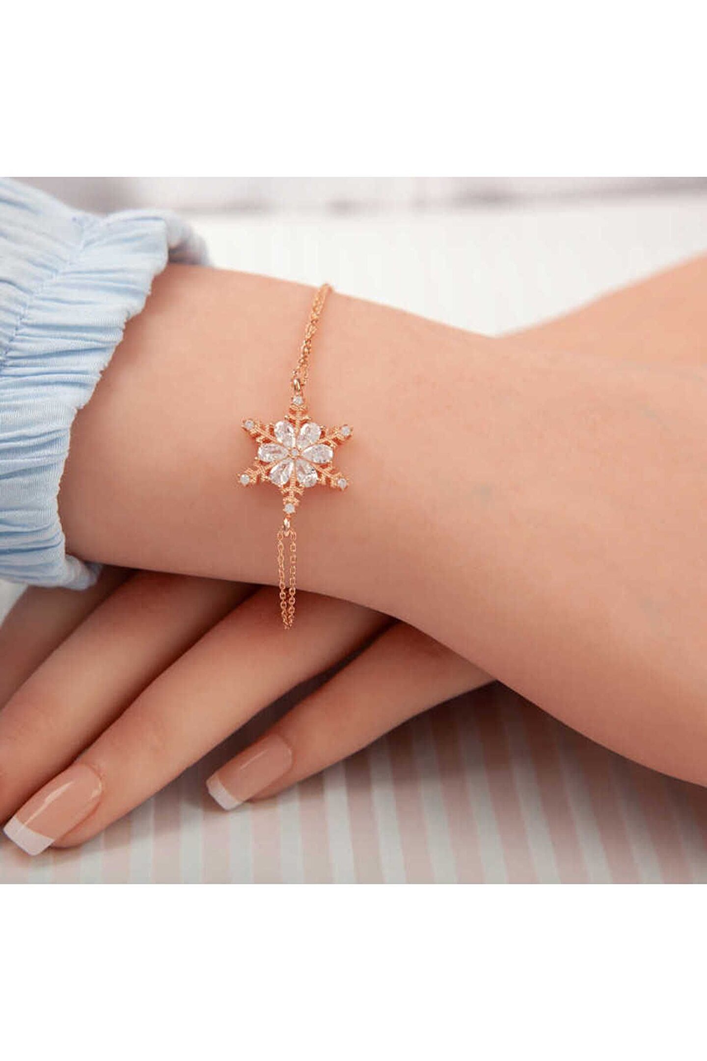 Samur Parti Parti Aksesuar & Kostüm 925 Ayar Gümüş Rose Kar Çiçeği Kadın Bileklik