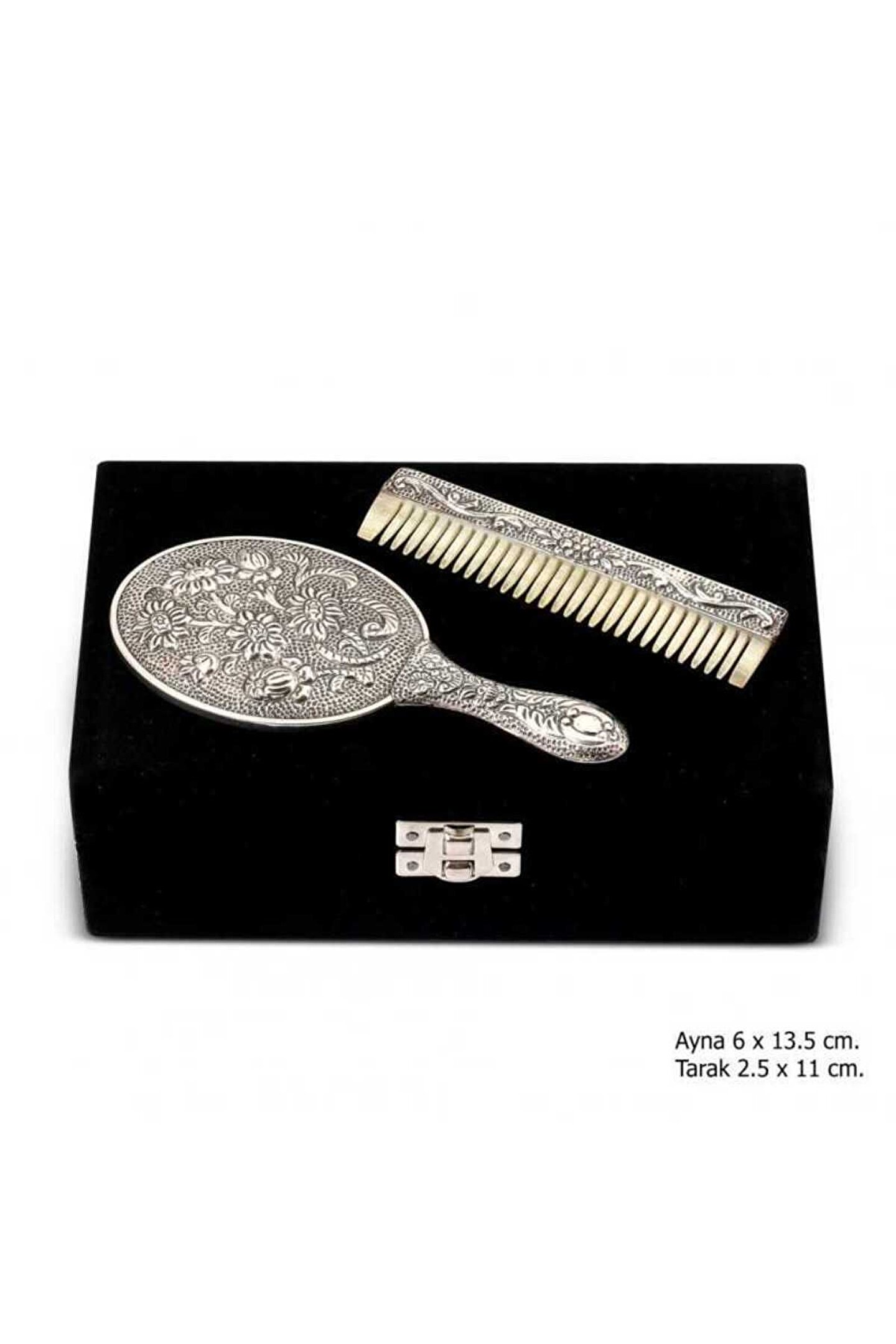 Himarry Papatya Motifli Ayna Tarak Gümüş Set