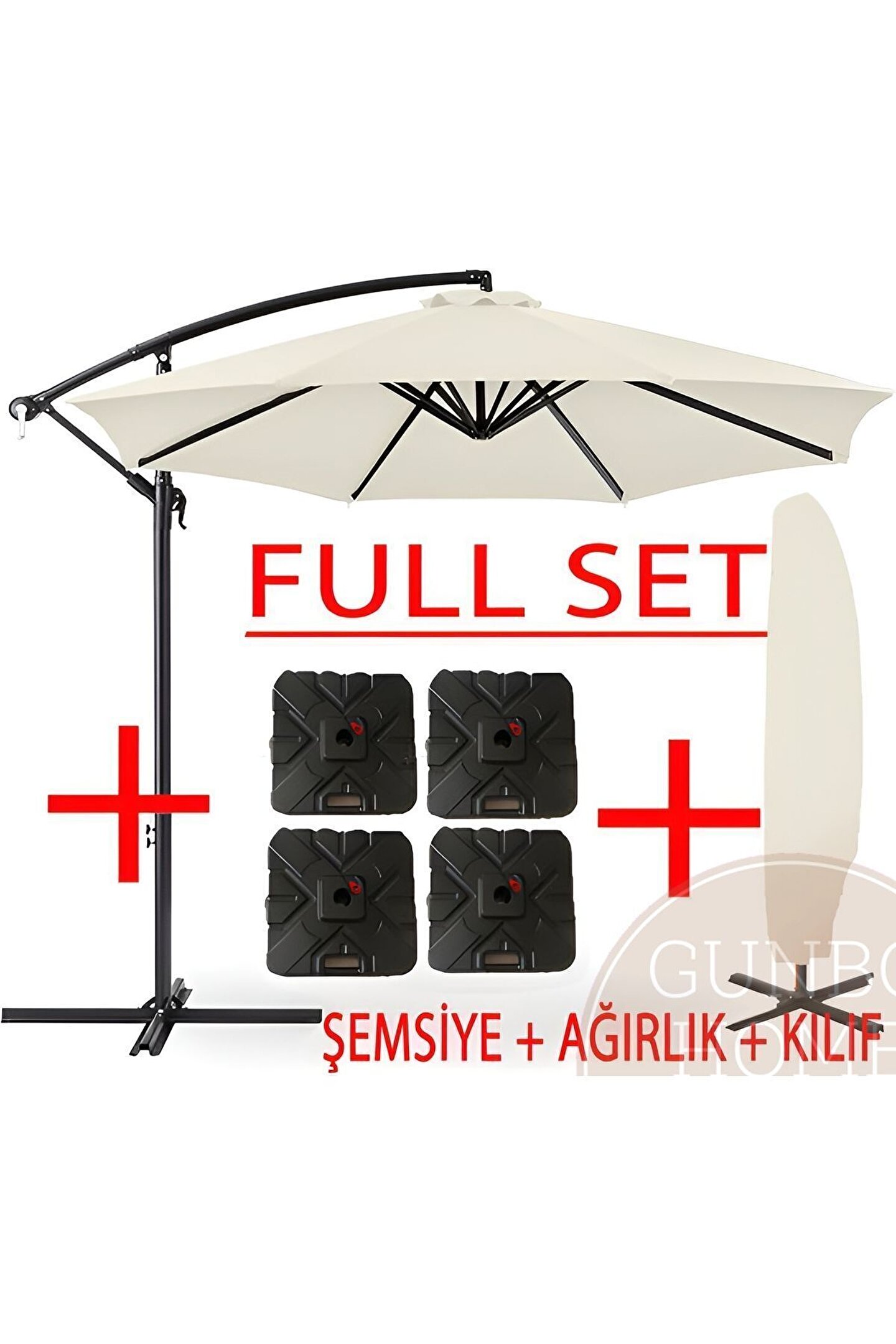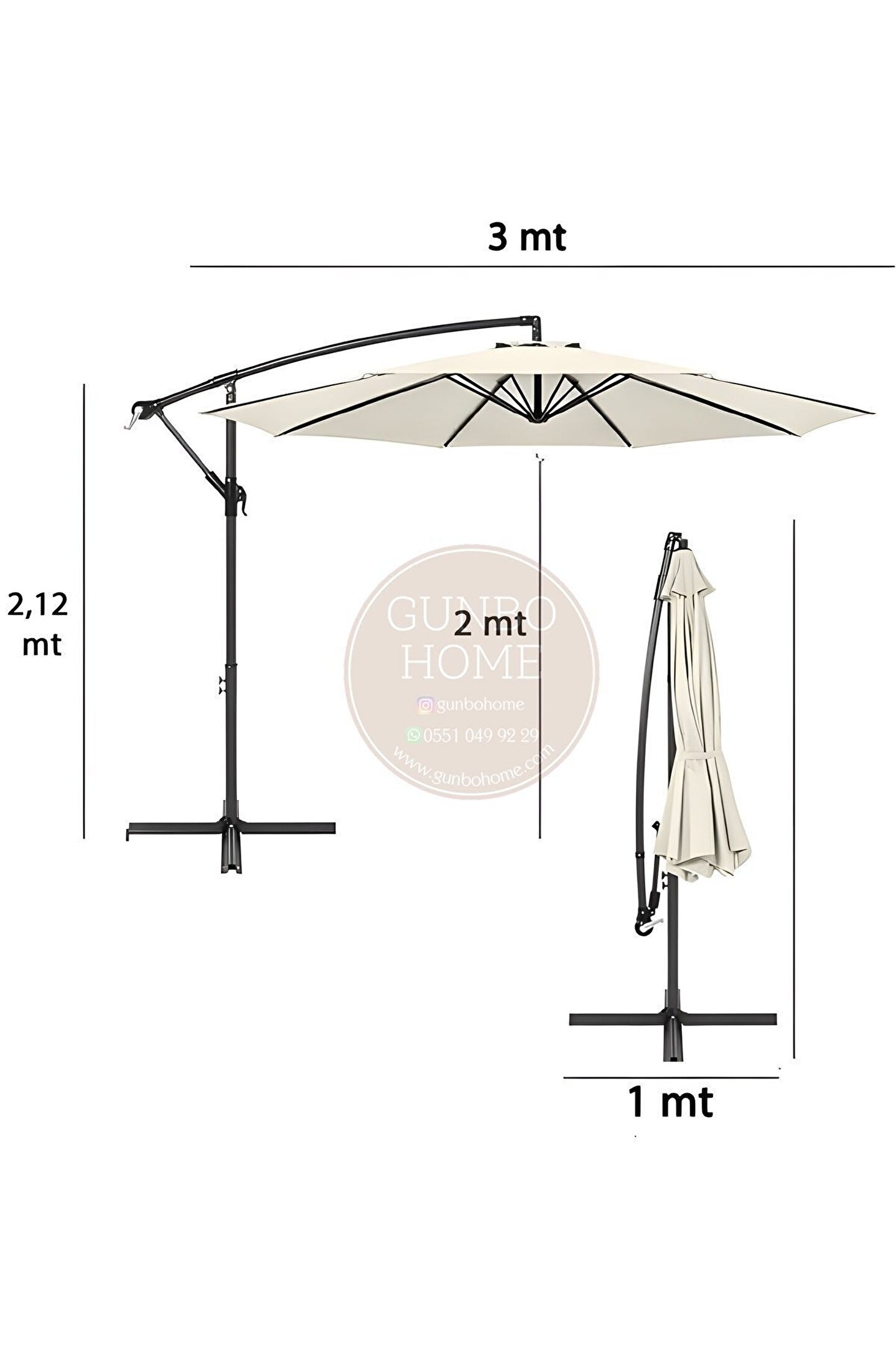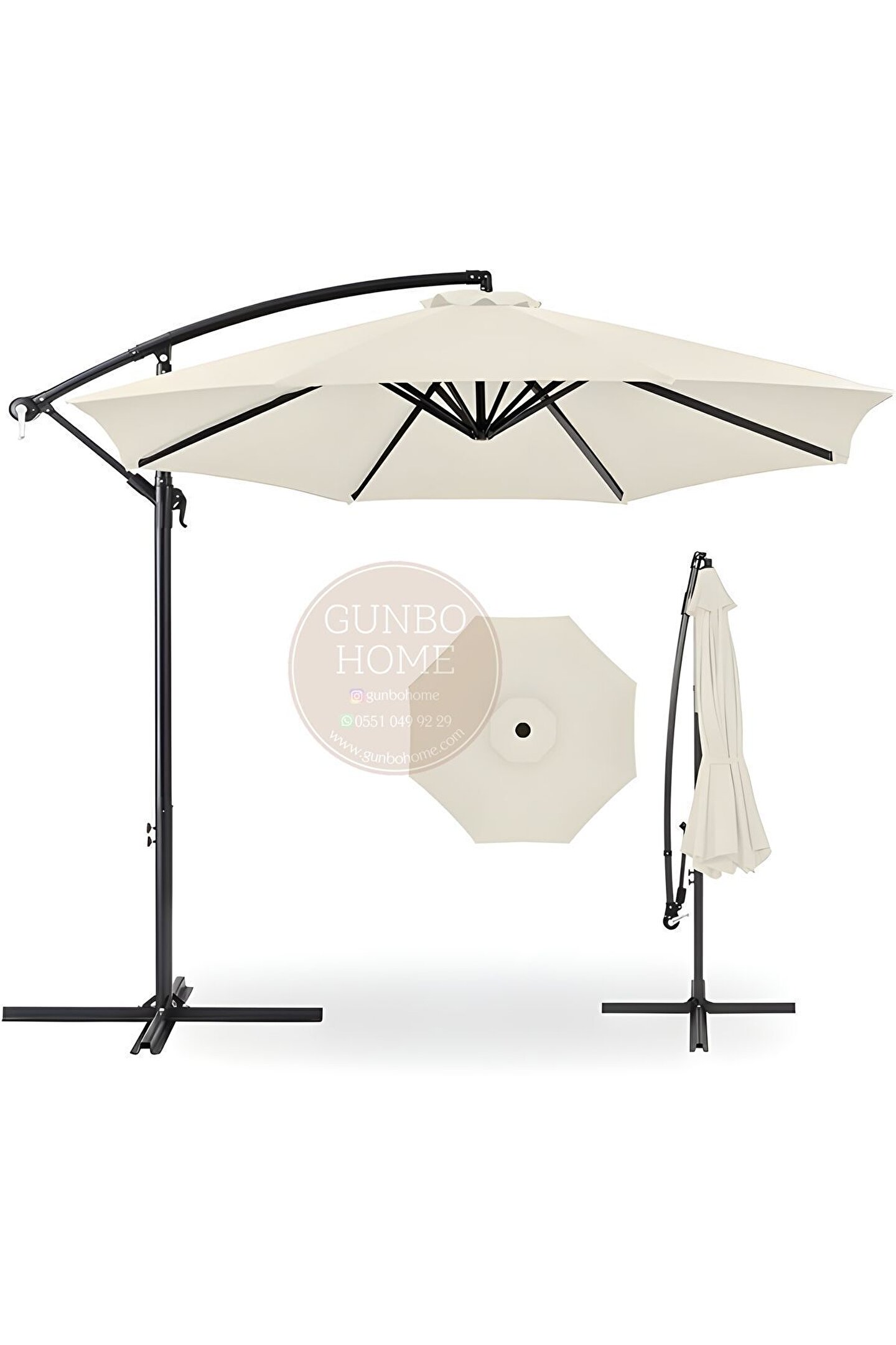 GUNBO HOME 3 Mt 8 Kaburga Full Demir 21 Kg EKRU Bahçe Şemsiyesi Full Set Havuz Şemsiyesi Büyük Şemsiye
