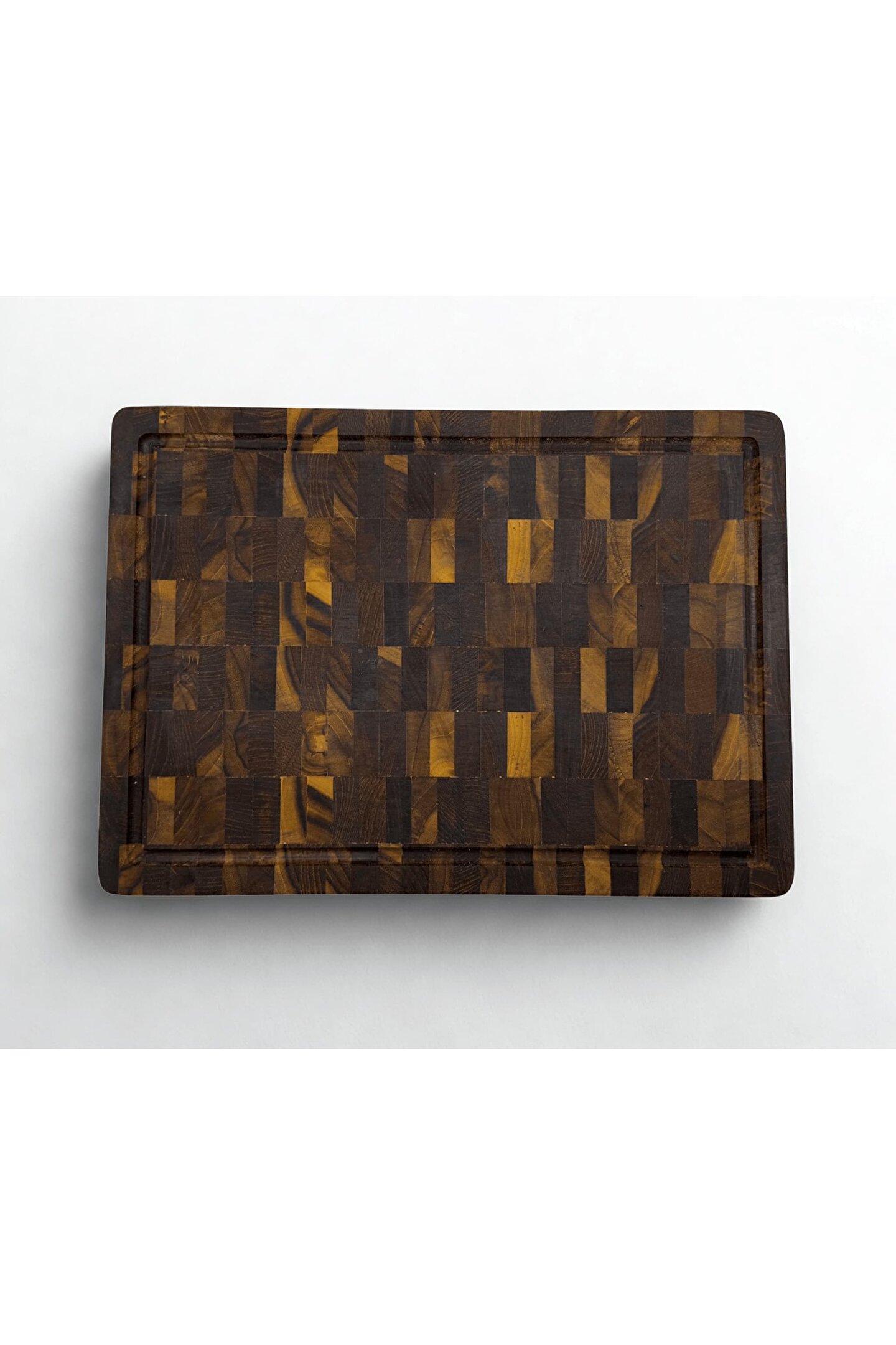 GUNBO HOME Tik Chef Kesme Tahtası Large Boy ENDGRAIN 35×25×4 cm Masif Ahşap Doğrama tahtası Sunum Tahtası