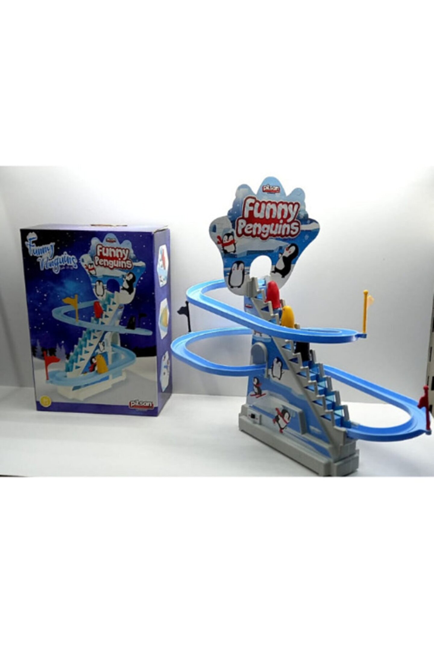 Funny Penguen Dön Dolaş Oyunu Penguen Dön Dolaş Oyunu çocuklar için artık çok daha zevkli. ; Çocukların Sosyalleşmelerini ve Eğlenerek Vakit Geçirmelerini Sağlar. ; Afacan penguenlerin gidişini seyret. ; 2 adet 1,5V AA Pil ile çalışmaktadır.(Piller dahil değildir.) Platform yüksekliği 23 cm'dir. ; Yaş Grubu : 3+ Yaş Barkodu: 8693461023293 Item No : 03517 Kutu Ölçüleri : 29,5 x 20,5 x 11 cm. ; Desi Değeri: 3;