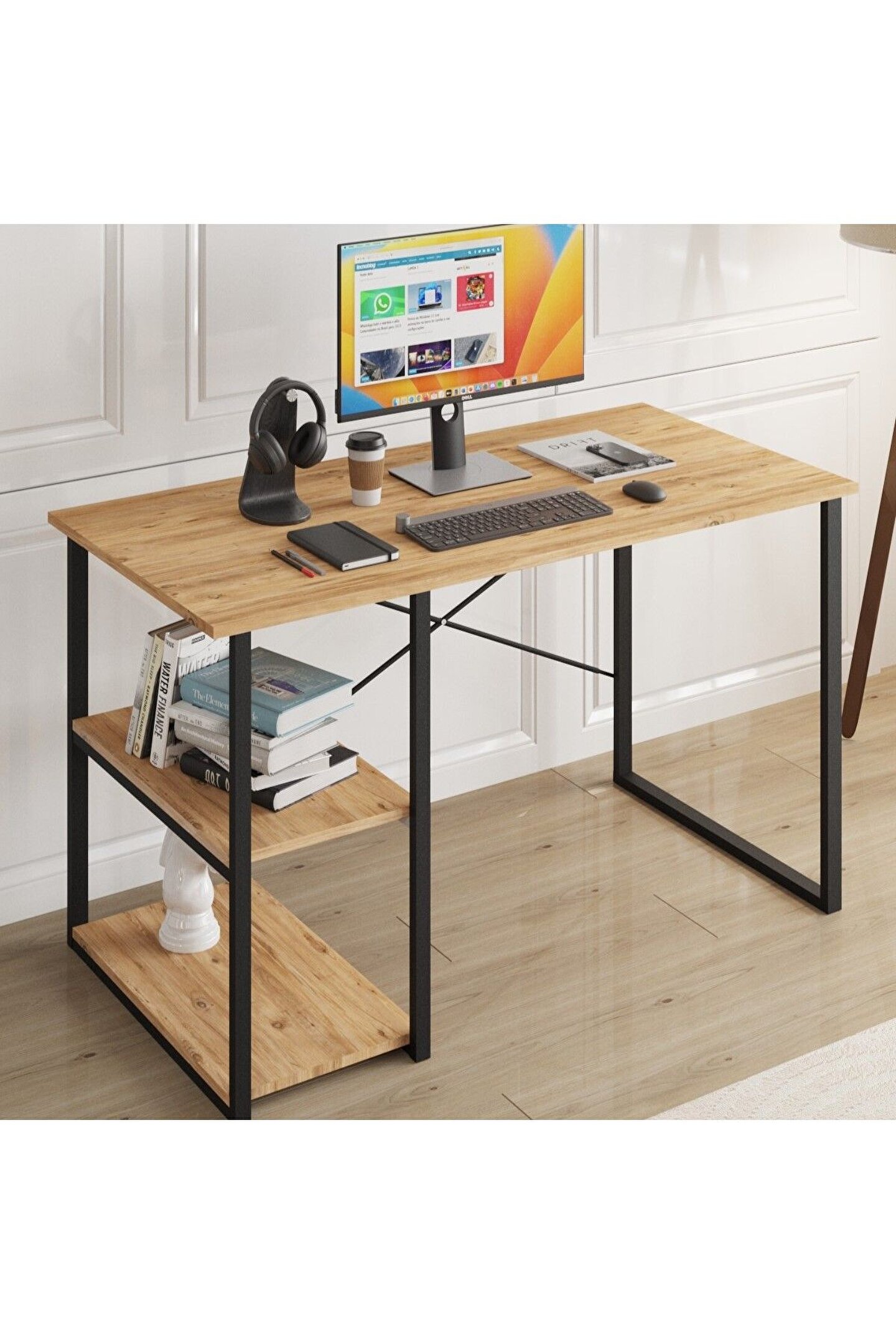 Güzelkan Çalışma Masası Raflı Ofis Laptop Bilgisayar Masası Çam