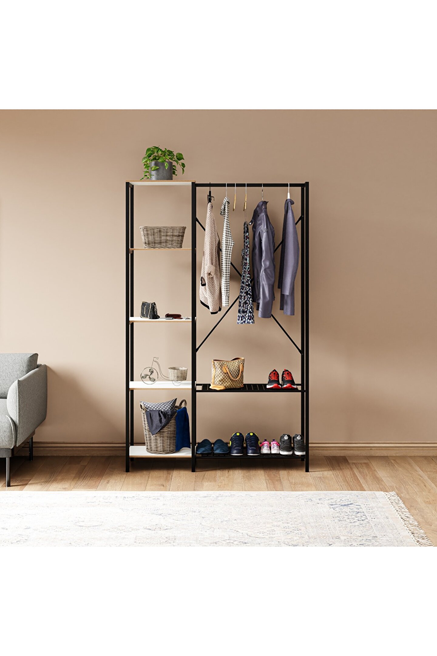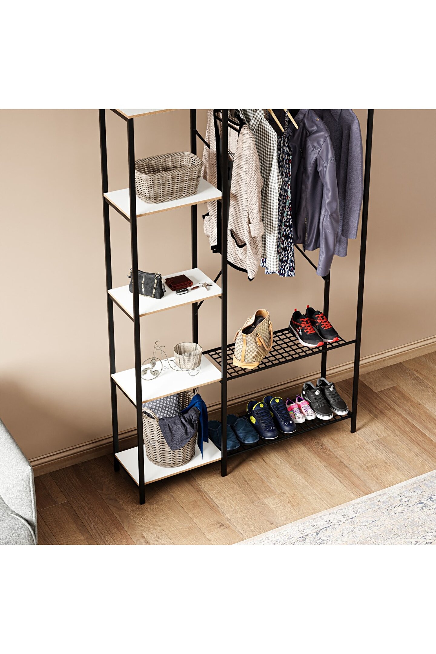 Bu ürün, sadece bir ayakkabılık olarak değil, aynı zamanda bir portatif portmanto ve gardırop olarak da işlev görür. Geniş iç hacmi, çeşitli eşyalarınızı düzenli bir şekilde saklamanızı sağlarken, raf aralıkları farklı boyutlardaki eşyalarınız için uygun alanlar sunar. Çok yönlü kullanımı ile bu dolap, giriş alanlarında, yatak odalarında veya koridorlarda mükemmel bir depolama çözümüdür.