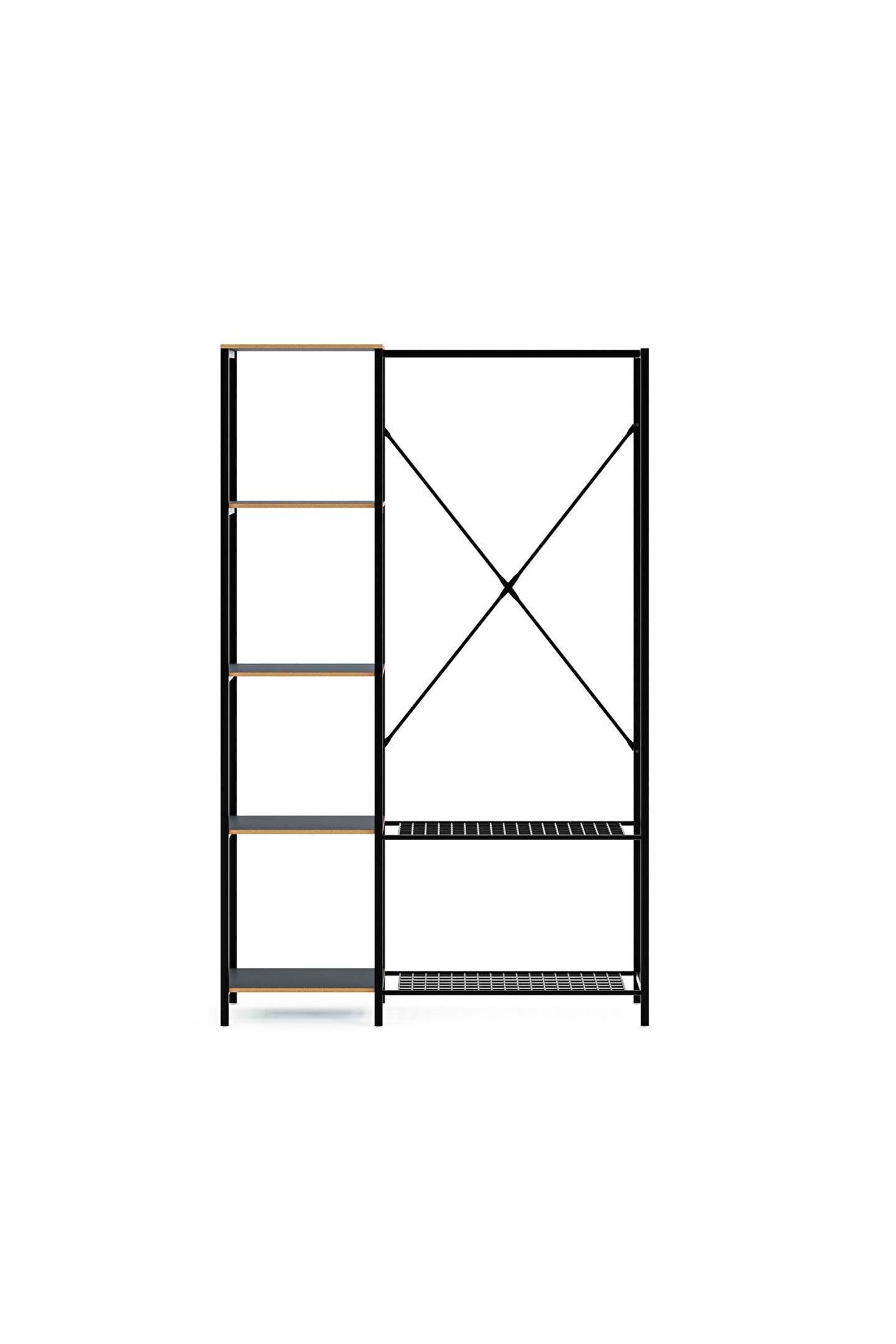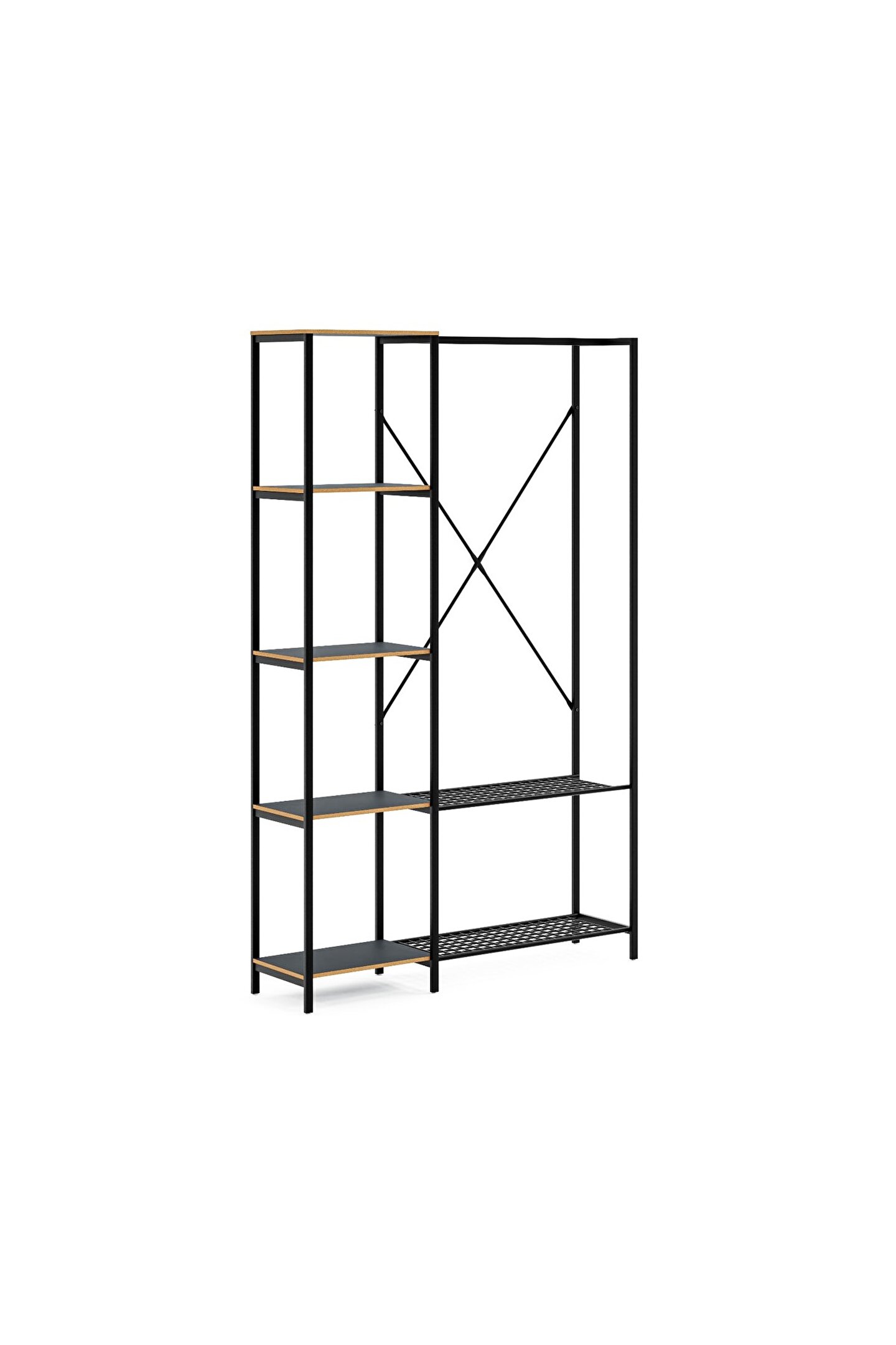 Çok Amaçlı Metal Ayaklı Raflı Dolap Ayakkabılık Portatif Portmanto Gardırop'in kurulumu tamamlandıktan sonra, sadece fonksiyonel bir depolama alanı olarak değil, aynı zamanda odanızın dekoratif bir öğesi olarak da ön plana çıkacağını göreceksiniz. renginin sıcak tonları, mekana doğal bir dokunuş katarak evinizin atmosferini zenginleştirir. Metal ayaklar ise, modern bir estetikle sağlamlığı birleştirerek, her türlü kullanım koşuluna dayanıklı bir yapı sunar.