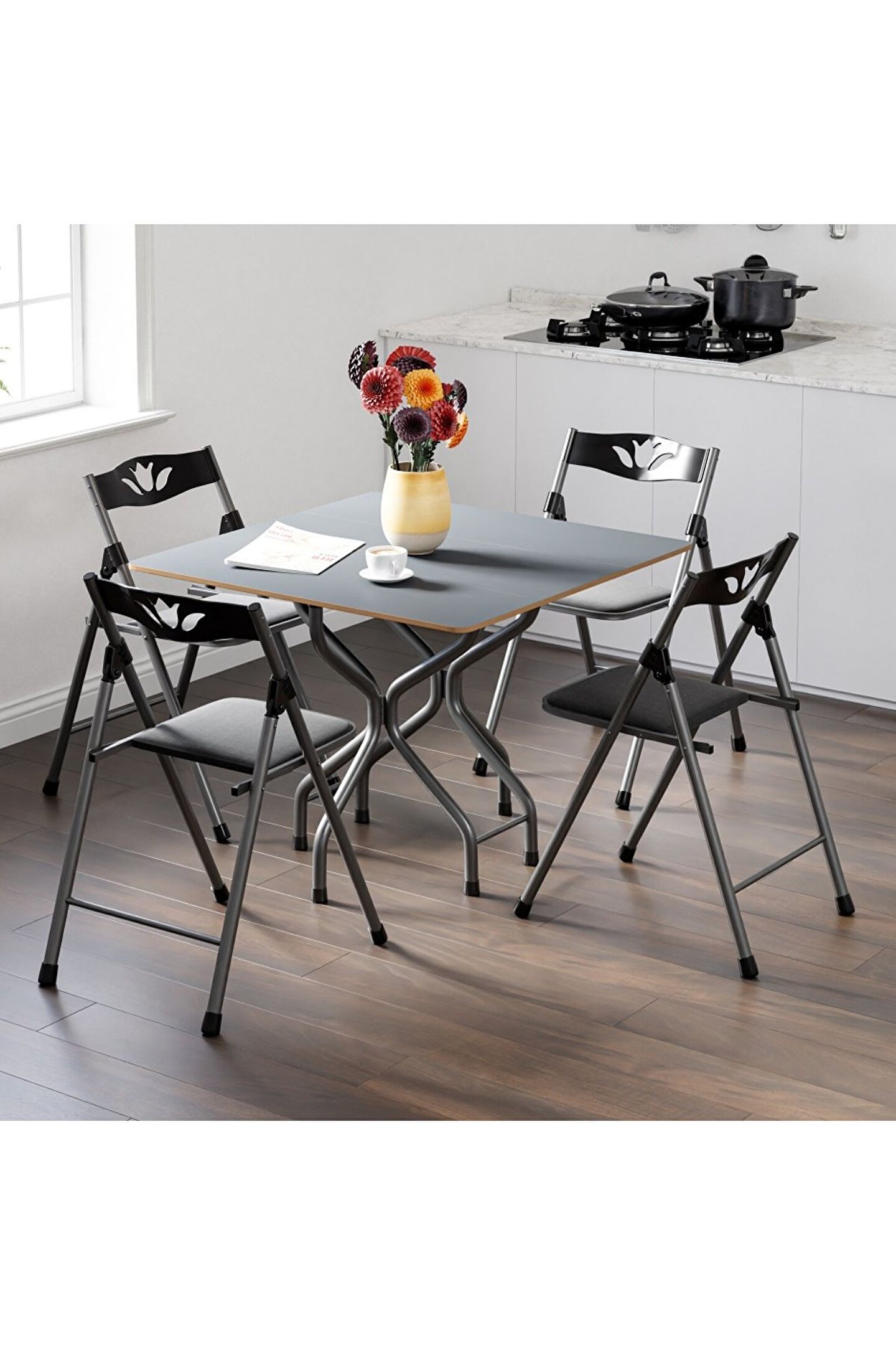 Katlanır Kırma Kare Masa Sandalye Takımı Seti, her türlü alanda konumlandırılabilen, şık, modern ve trend bir üründür. Dört sandalye ve bir masa içeren ürün, aileler için harika bir seçenektir.