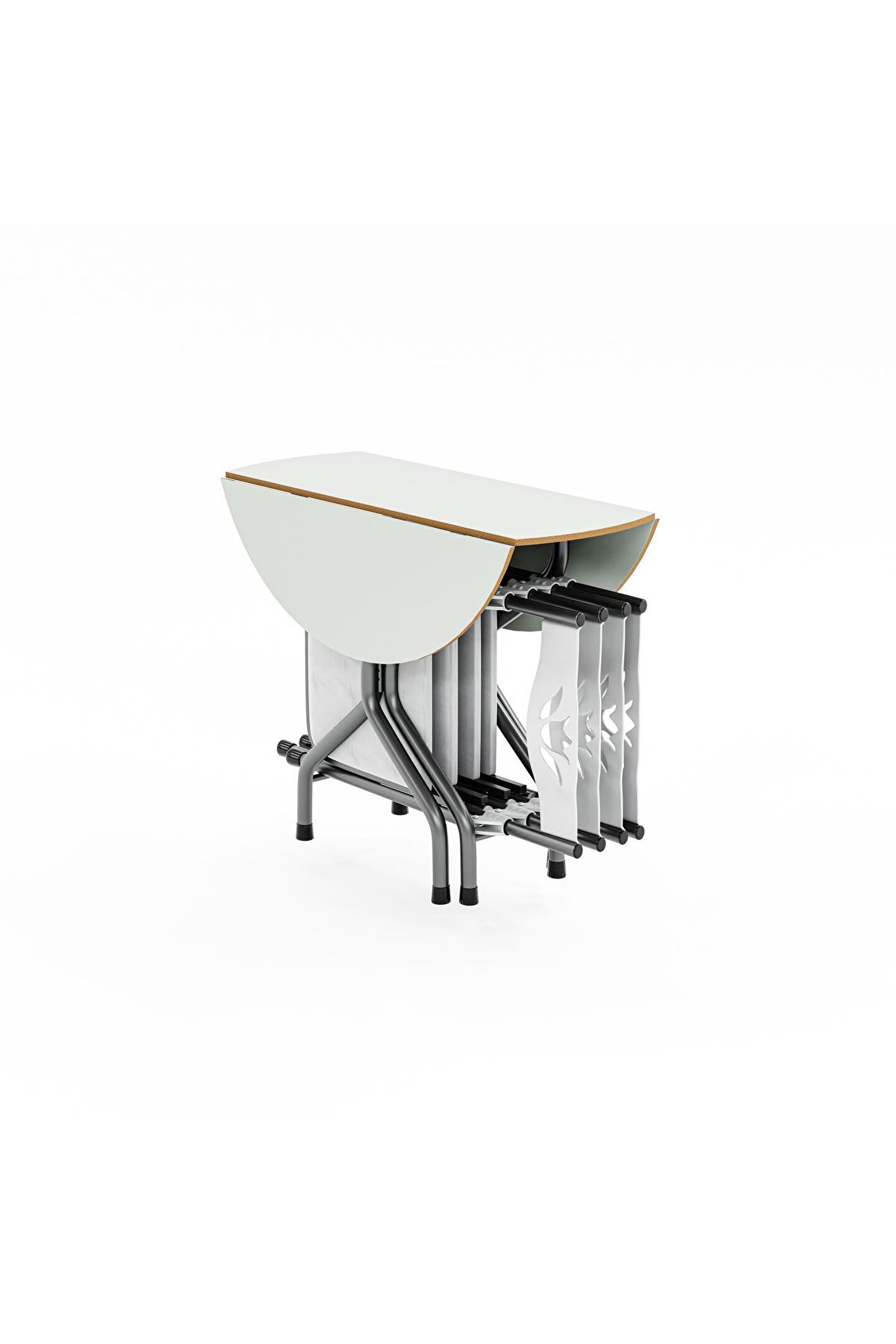 Birinci Kalite %100 Türk Malı;Highglos MDF ;Malzeme ;1 Adet 90x90 Masa ;4 Adet Sandalye ;Masa Yan Kanatları Katlanır Özelliktedir. ;Dar Alanlarda Masanın Bir Kanadı Katlayarakda Kullanabilirsiniz.; isterseniz 2 kanadınıda katlayabilirsiniz. ;Ayrıca tüm sandalyelerde katlanabilir özelliğe sahip olup kullandıktan sonra katlayarak masanın ortasındaki boşluğa yerleştirebilirsiniz. ;Sandalyeler, Mutfak Balkon Salon Gibi iç Mekanlarda Kullanılmak İçin Tasarlanmış Olup Şık Görünümü Sayesinde Bulunduğu Ortama Ayrı Bir Güzellik Katacaktır. ;Sandalyelerin Sırt ve Mafsalları Plastik Ozellikte Olup Estetiktir. ;Sandalyelerin Oturum yerleri Suni deriden imal edilmiştir ;Yenilenmiş Gövde Demir Aksamı En Az 1 ml. Kalınlıktadır. ;Gövde Gri renkli Fırın Boya ile Boyanmıştır. ;Ürünün Açık Ölçüleri: 90x90 cm genişlik, 70 cm yükseklik.;Ürünün Kapalı Ölçüleri: 39 cm Genişlik, 90 cm Uzunluk, 70 cm Yükseklik. Ürün Demonte Olarak Gönderim Yapılacaktır.