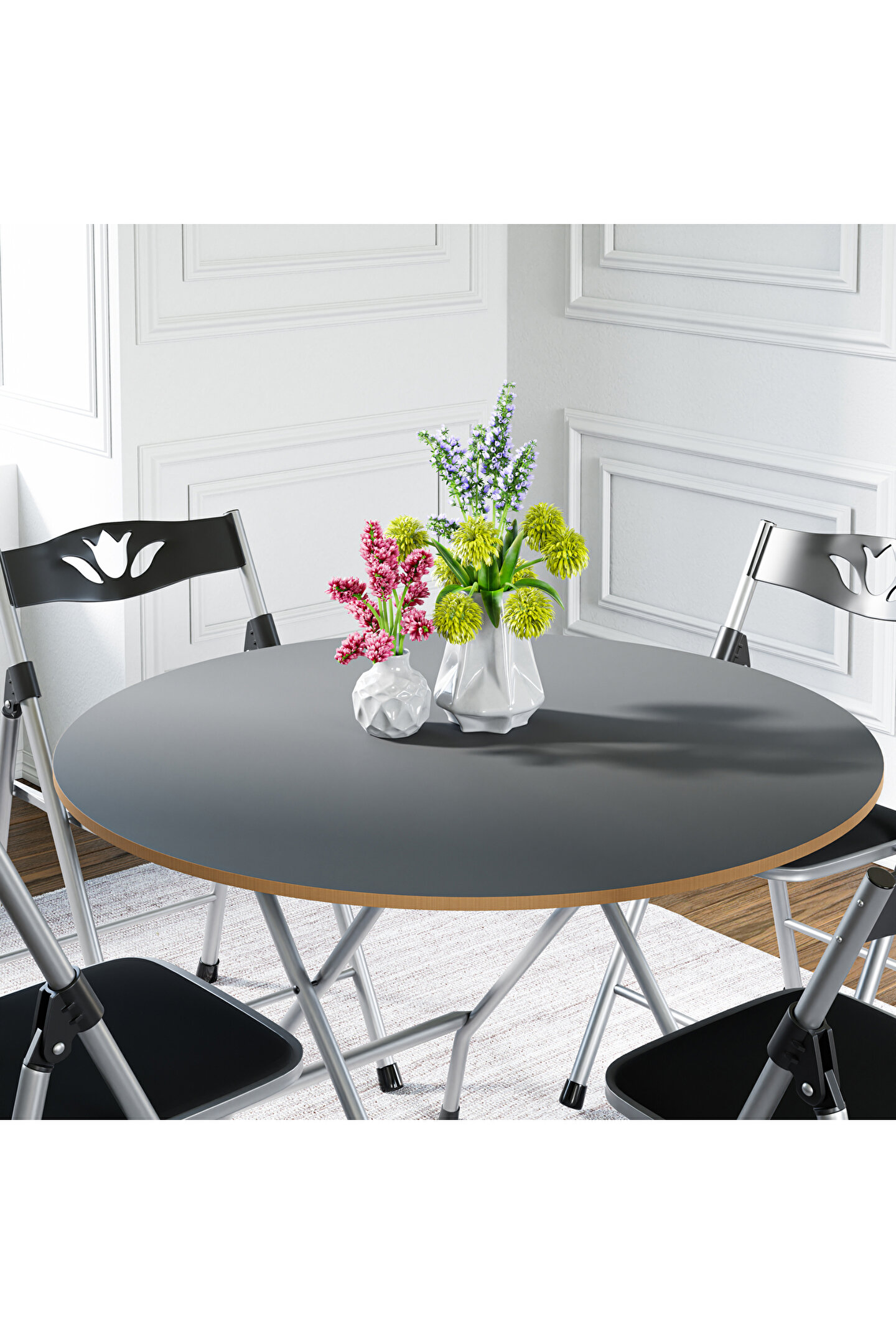 Katlanır Masa Yuvarlak Kırma Mutfak Masası, modern ve işlevsel bir mobilyadır. Bu set, özellikle küçük mutfaklar, yemek odaları veya çok amaçlı alanlar için tasarlanmıştır. 70 çap boyutlarındaki masa, ideal bir yemek yüzeyi sunarken, katlanabilir sandalyeler alanı en verimli şekilde kullanmanıza olanak tanır. Setin tasarımında, Atlantik Çam'ın doğal dokusu ve MDF, görsel bir zenginlik ve modern bir dokunuş ekler. Masa ve sandalyeler, elektrostatik boyalı metal ayaklar sayesinde ekstra sağlamlık kazanır. Bu yapı, günlük kullanıma uygun dayanıklılık sunarken, şık bir görünümle mekanınızı güzelleştirir. Katlanabilir masa ve sandalyeler, küçük yaşam alanlarında büyük bir avantaj sağlar. Setin kolay katlanabilir olması, sınırlı depolama alanlarında bile rahatlıkla saklanabilmesine imkan verir. Bu özellik, özellikle apartman dairesi gibi yerlerde yaşayanlar için idealdir, kullanılmadığı zamanlarda masa ve sandalyeleri kolayca kaldırıp alan açabilirsiniz. Set, fonksiyonelliği ve şıklığı bir arada sunarak, her türlü iç mekan dekorasyonuna uyum sağlayacak şekilde tasarlanmıştır.