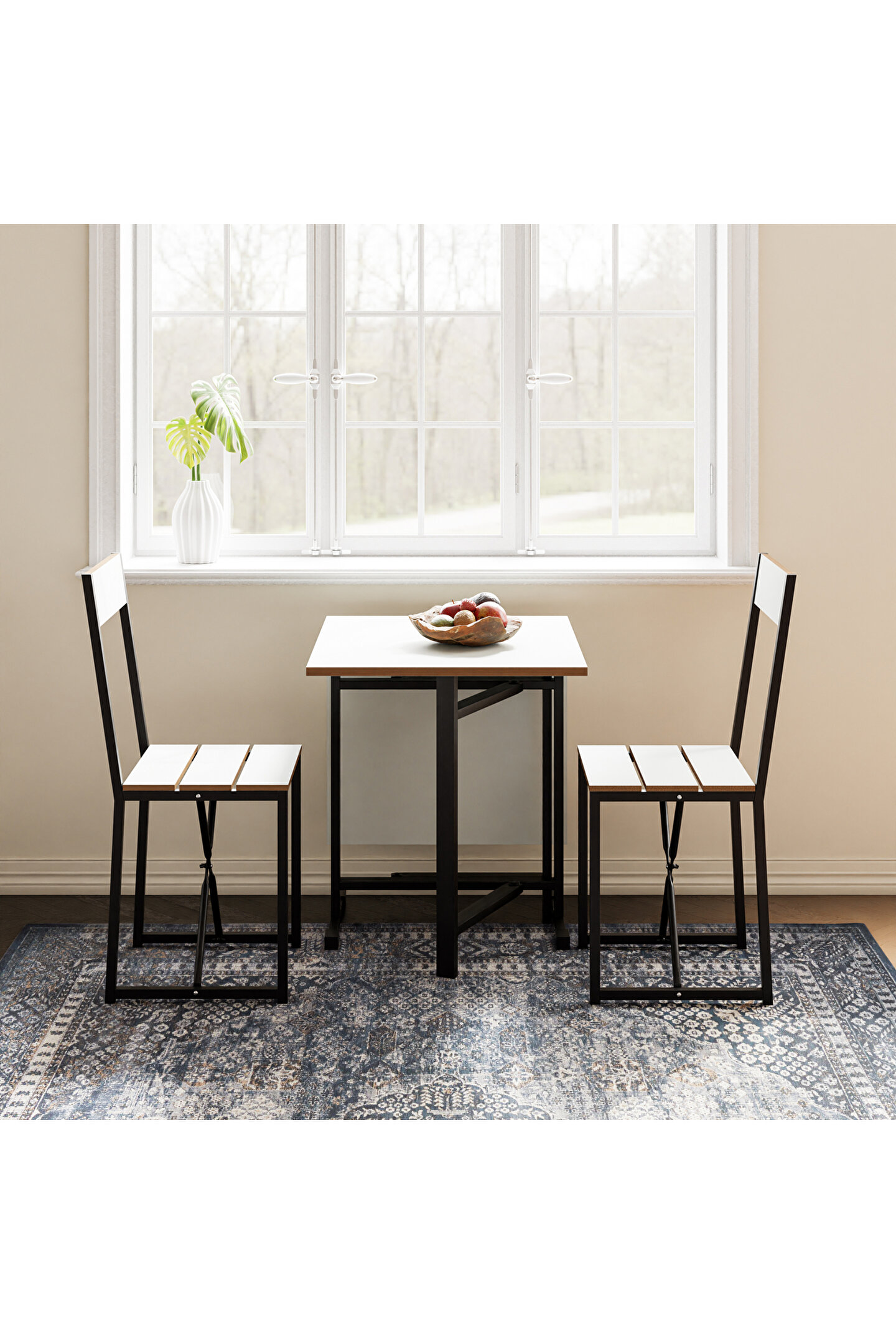 Setin tasarımı, modern ve minimalist çizgileri bir araya getirir, bu sayede hem işlevsel hem de estetik bir görünüm sunar. Katlanabilir yapı, masa ve sandalyelerin kolayca saklanabilmesine imkan tanır, bu da özellikle misafir ağırlama gibi durumlar için ekstra alan yaratılmasını sağlar. Ürün, günlük kullanım için de uygundur, zira montajı ve kullanımı oldukça pratiktir.