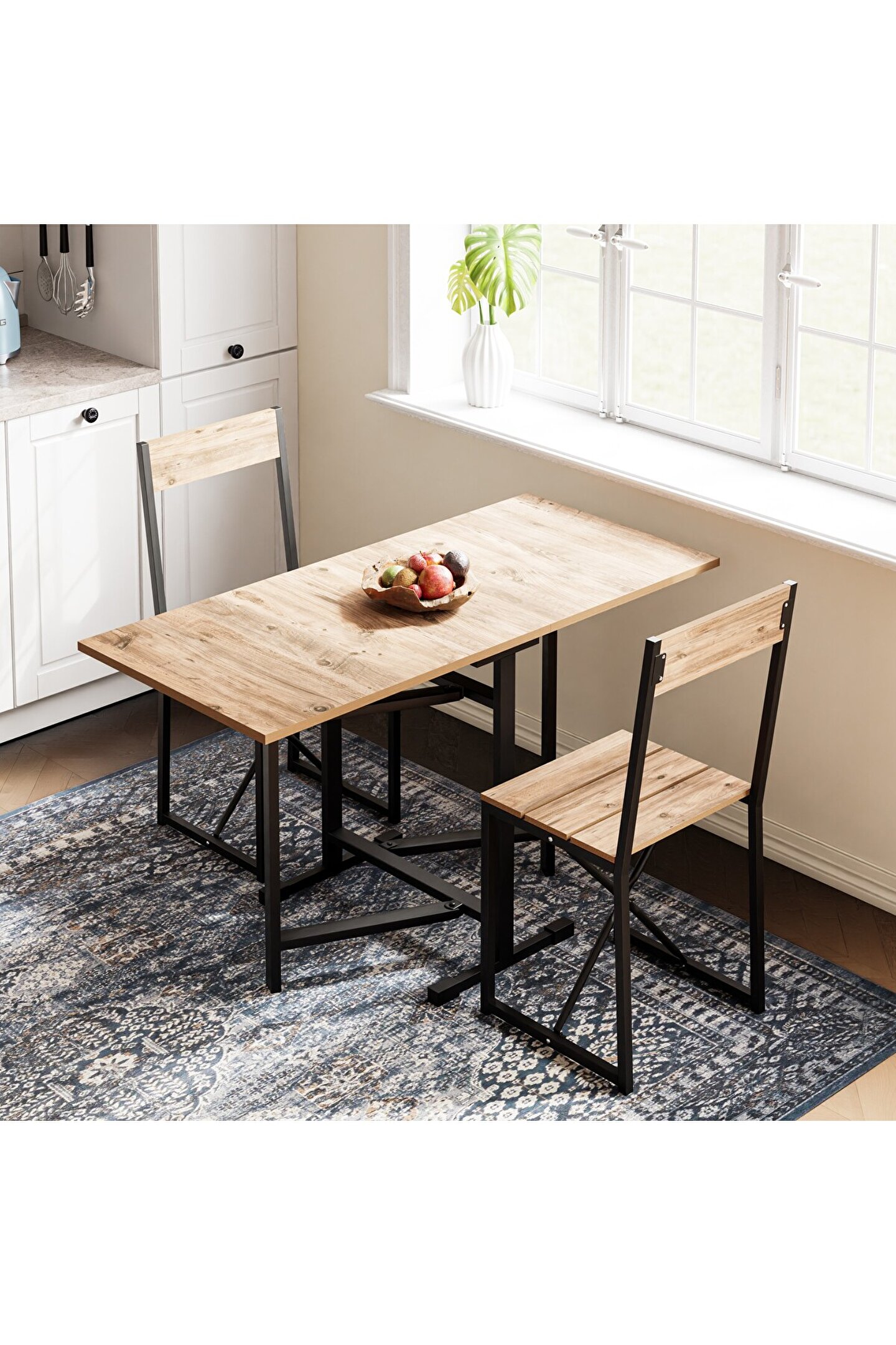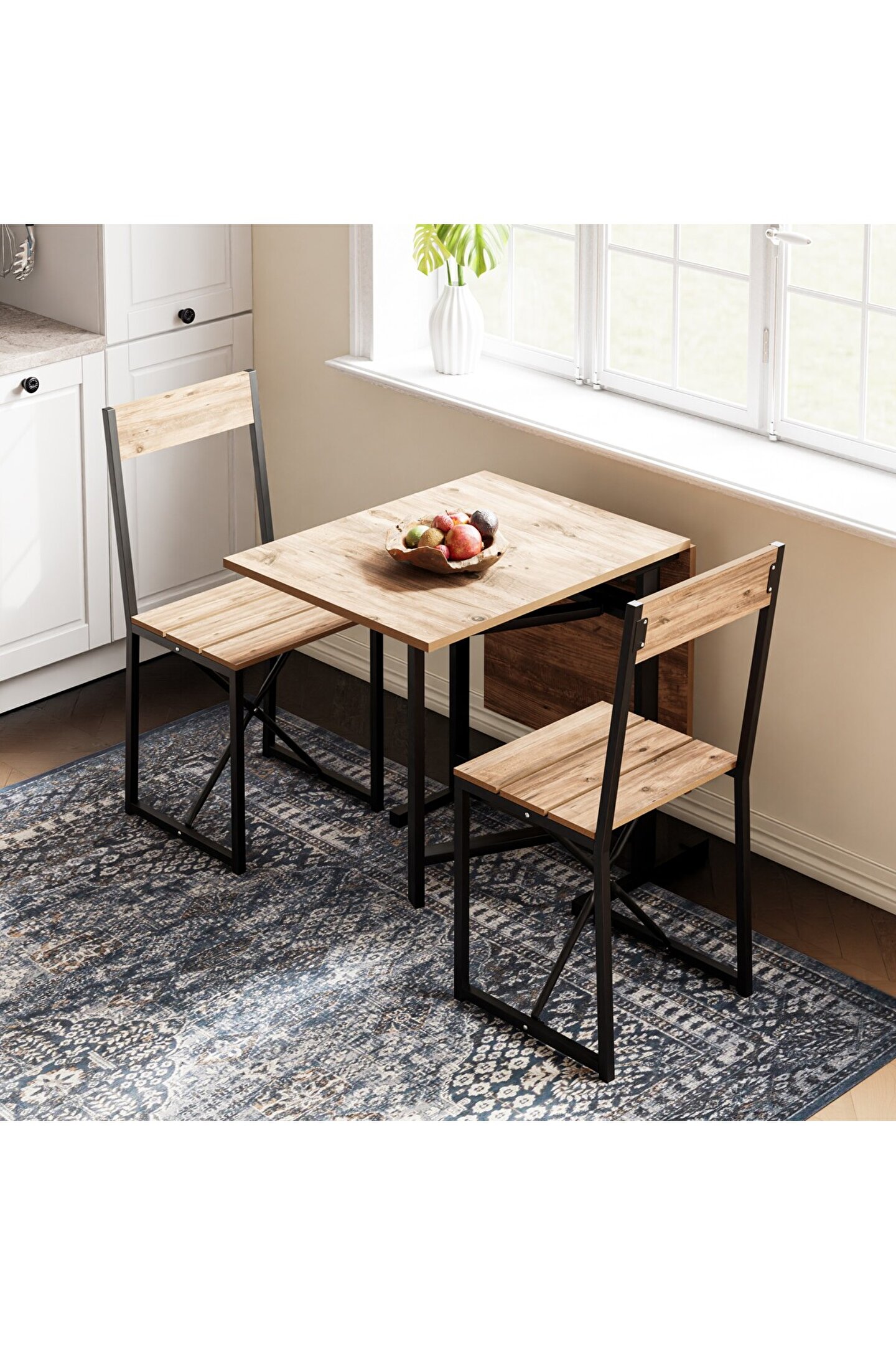Katlanır Mutfak Masa Sandalye Takımı 1137, küçük mutfaklar ve sınırlı oturma alanları için özel olarak tasarlanmış bir mobilya setidir. Set, bir adet katlanabilir masa ve iki adet katlanabilir sandalyeden oluşmaktadır. Bu özellik, kullanılmadığı zamanlarda minimum alan kaplamasını sağlar, böylece alanınızı daha verimli kullanmanıza olanak tanır.