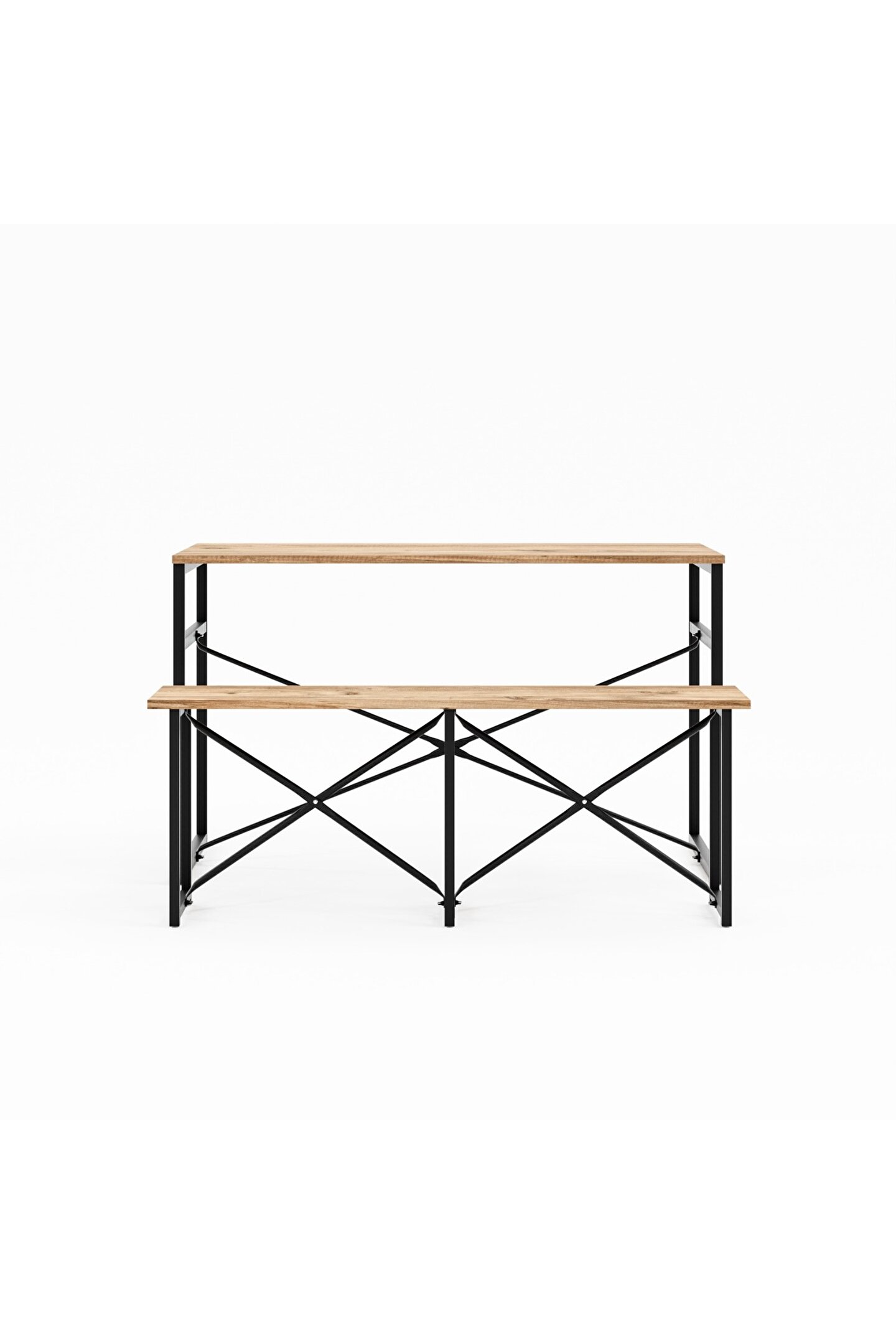 Bench Bank Masa Seti , 120x60 cm ebatlarında geniş bir çalışma ve yemek yüzeyi sağlayan bir masa ve bench kombinasyonundan oluşur. Bu ölçüler, hem günlük kullanım hem de özel etkinlikler için mükemmel bir alana işaret eder. Masa yüksekliği olan 70 cm, ergonomik bir oturma deneyimi sağlar. Setin bench bölümü, genişliği 120 cm ve derinliği 32 cm ölçülerinde olup, 45 cm yükseklikte tasarlanmıştır. Bu bench, yemek masasına ekstra oturma alanı olarak mükemmel bir eşlikçi olmasının yanı sıra, mekana modern bir dokunuş da katar. Ürün ayakları, demir elektro statik boya ile kaplanarak dayanıklılık ve estetik görünüm sunar. Üst tabla kısmı, sağlamlık ve uzun ömürlü kullanım için suntalam malzemeden üretilmiştir. Bu malzeme seçimi, masanın kolay temizlenmesini ve bakımının pratik olmasını sağlar. Setin içeriği, bir adet masa ve bir adet benchten oluşur, bu da müşterilere kolay bir seçim ve satın alma süreci sunar.