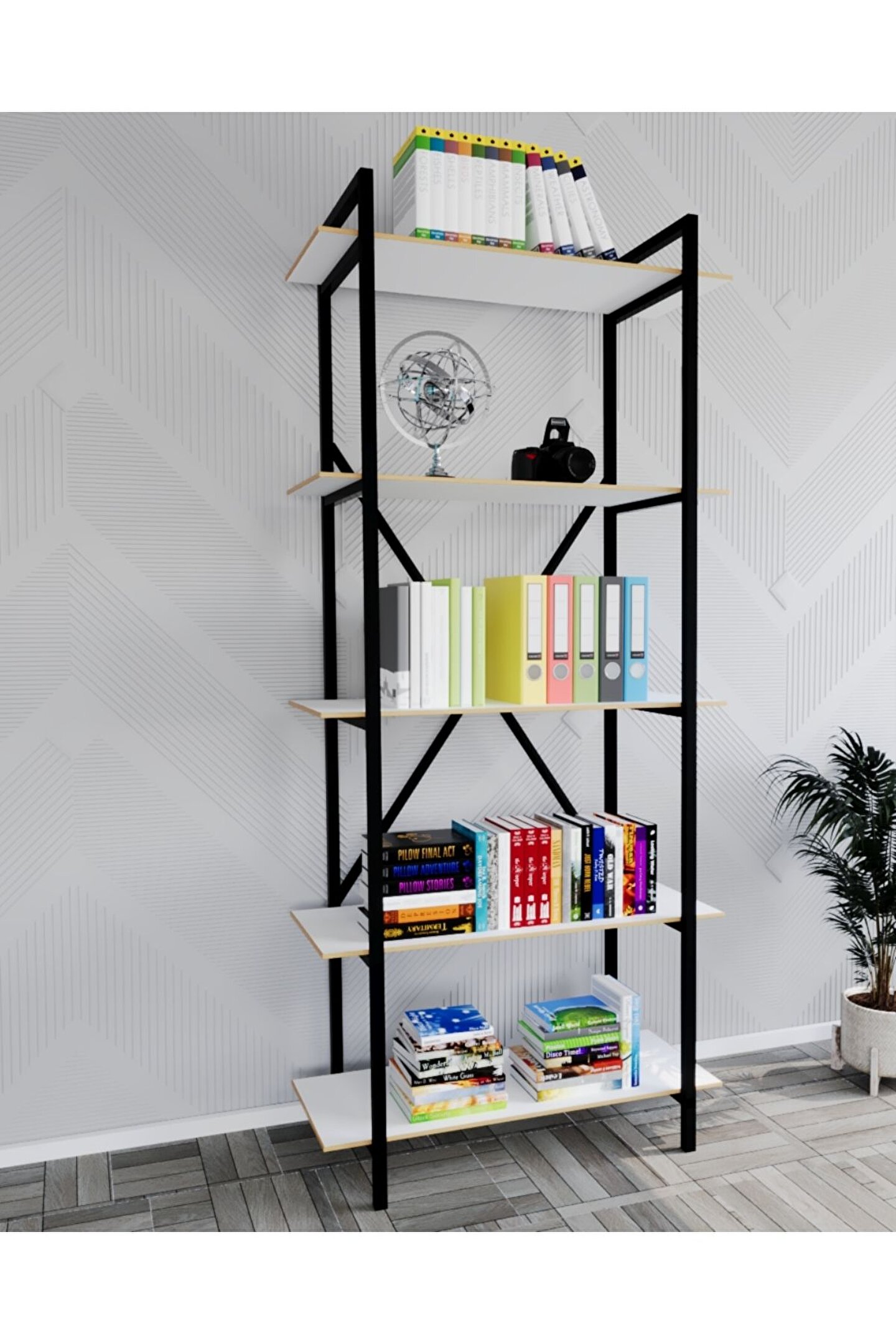 arayanların ihtiyaçlarına yüksek oranda yanıt veren Metal Kitaplık Raf 5 Raflı Kütüphane, salonların daha şık, özgün, moden ve benzersiz bir görünüm kazanmalarını sağlar. Fazla eşyaların saklanmasına yardımcı olan Metal Kitaplık Raf 5 Raflı Kütüphane, diğer yandan iç mekânın dağınık görünmesini önler. Her çeşit salon dekorasyonu ile uyumlu bir görüntüyü teşvik eder.