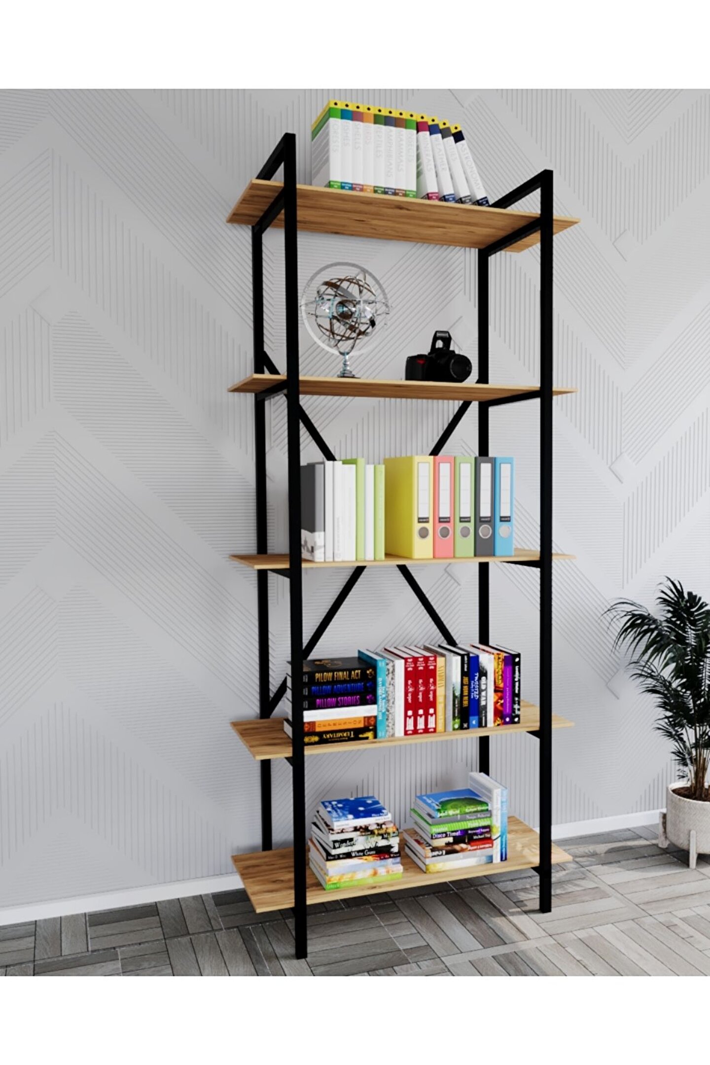 arayanların ihtiyaçlarına yüksek oranda yanıt veren Metal Kitaplık Raf 5 Raflı Kütüphane, salonların daha şık, özgün, moden ve benzersiz bir görünüm kazanmalarını sağlar. Fazla eşyaların saklanmasına yardımcı olan Metal Kitaplık Raf 5 Raflı Kütüphane, diğer yandan iç mekânın dağınık görünmesini önler. Her çeşit salon dekorasyonu ile uyumlu bir görüntüyü teşvik eder.