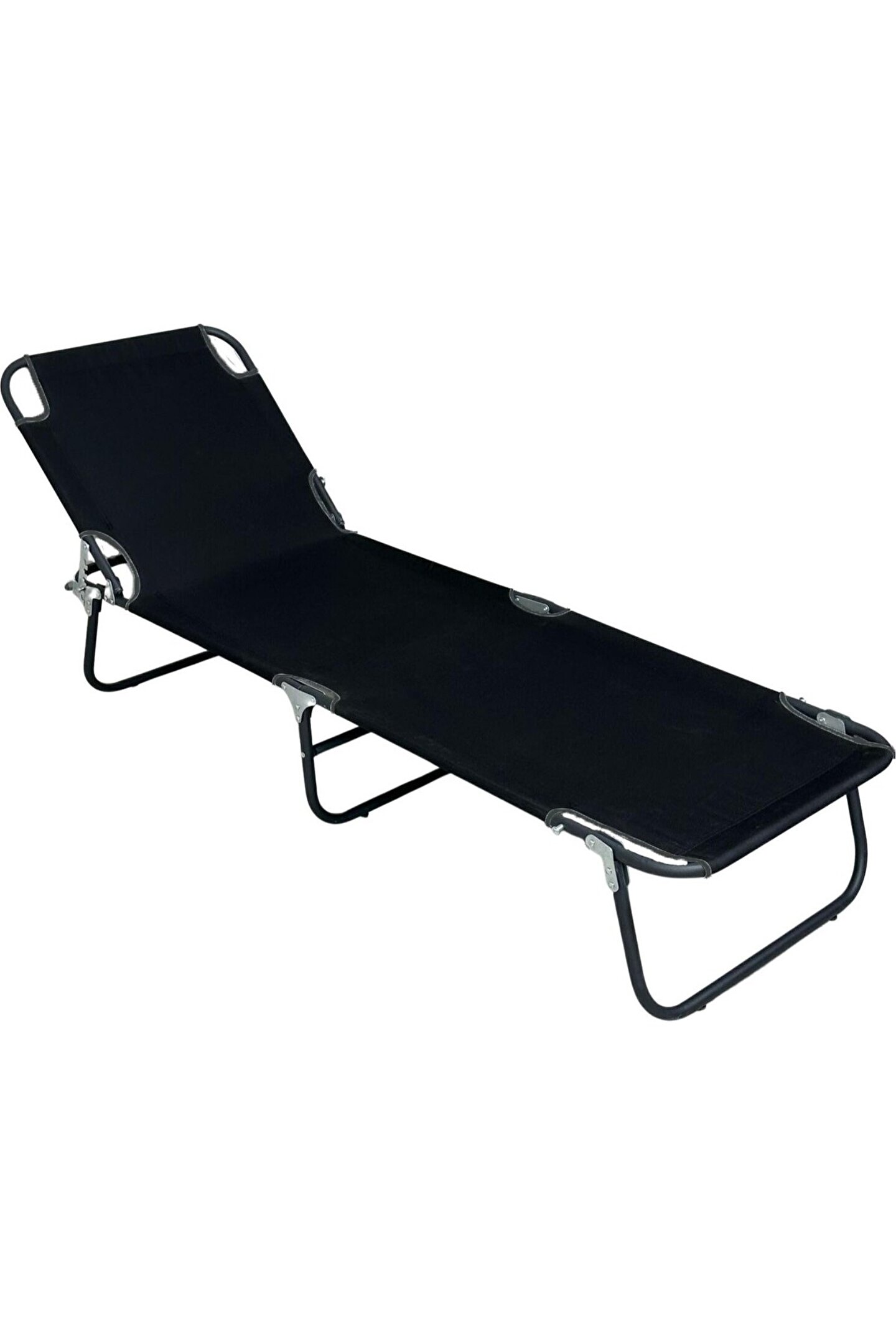 Güzelkan Minderli Yastıklı Kamp Yatağı Katlanır Şezlong Kampet Siyah 1630