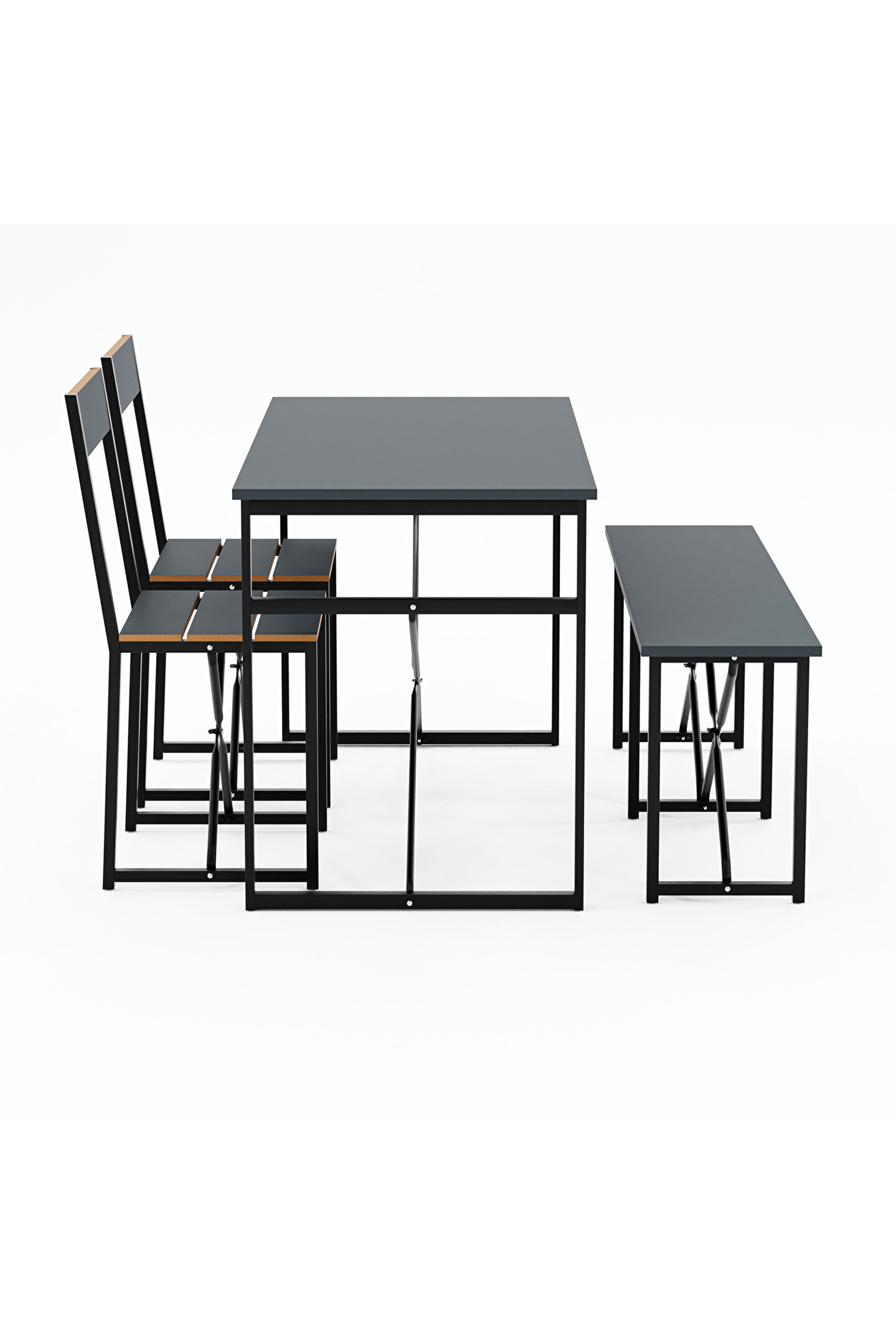 Set, fonksiyonel beklentileri estetik ile buluşturan dinamik bir yapıya sahiptir. 120 cm x 60 cm ölçülerindeki geniş masa tablası, yemeklerinizi, çalışmalarınızı veya toplantılarınızı rahatça gerçekleştirebileceğiniz bir alana sahiptir. 70 cm'lik ideal yüksekliği, ergonomik bir oturma ve kullanım deneyimi sağlar. Ayrıca, bench ve sandalyelerin uyumlu tasarımı, göze hitap ettiği kadar konfor da sunar.