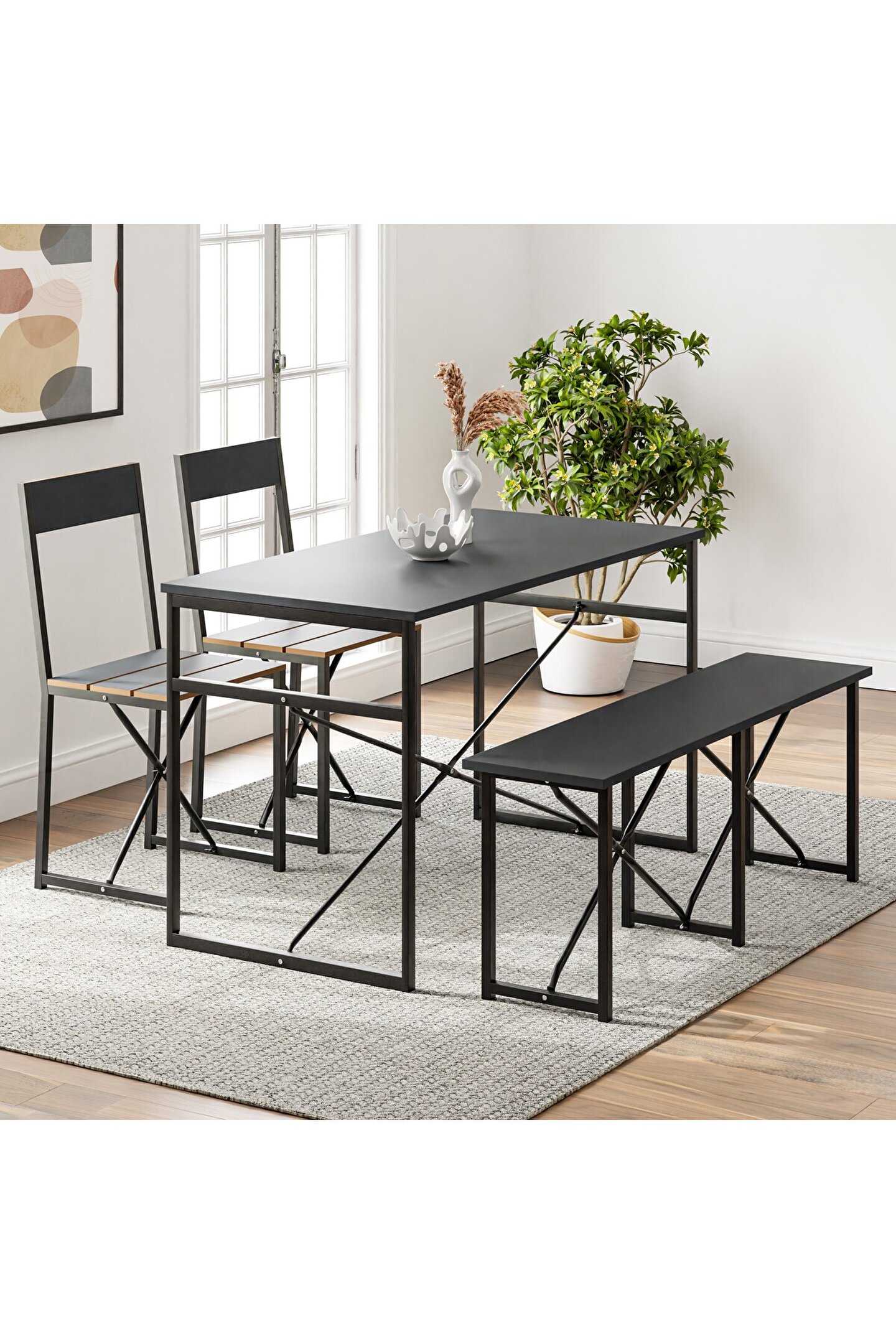 en önemli yönlerinden biri de, modern yaşam alanlarındaki çeşitliliği ve dinamik yapısıdır. Akıllıca tasarlanmış sandalye ve bench'leriyle, bu setin kullanıcıya sunduğu esneklik, hem gündelik yaşamın ihtiyaçlarına cevap verir hem de estetik bir tatmin sağlar. Bu ürün, şıklığı ve kullanışlılığıyla, günlük yaşamın vazgeçilmez bir parçası haline gelecek.