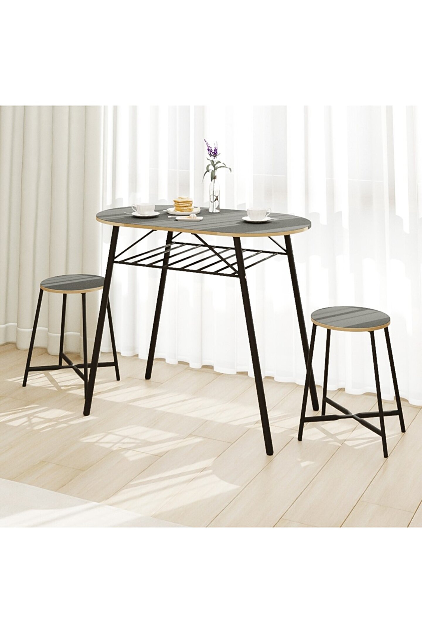 •  Mutfak Masası Oval Tabure Takımı Masa Sandalye Takımı, iki kişilik bir set olarak gelir ve içeriğinde bir adet oval masa ile iki adet tabure bulunur. Bu parçaların her biri, hem salon hem de mutfak gibi çeşitli yaşam alanlarınıza uyum sağlayacak şekilde estetik bir tasarıma sahiptir. Modern ve minimalist görünümü, herhangi bir oda dekorasyonunu kolaylıkla tamamlar.