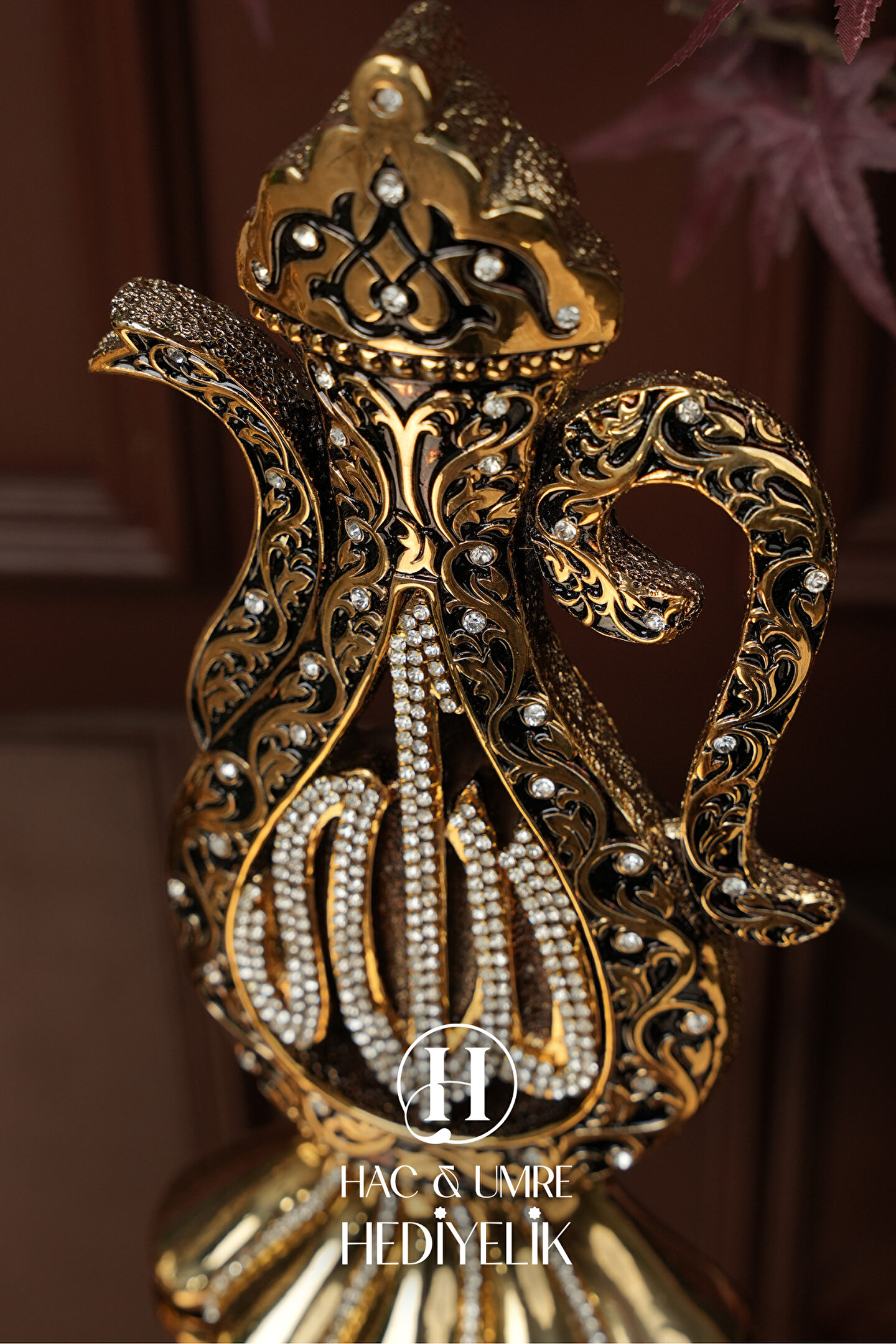 Hac Umre Hediyelik Allah Muhammed Biblo | Dini Manevi Hediye | Ev Dekorasyon Biblo | Lüks Gold İbrik Biblo Seti