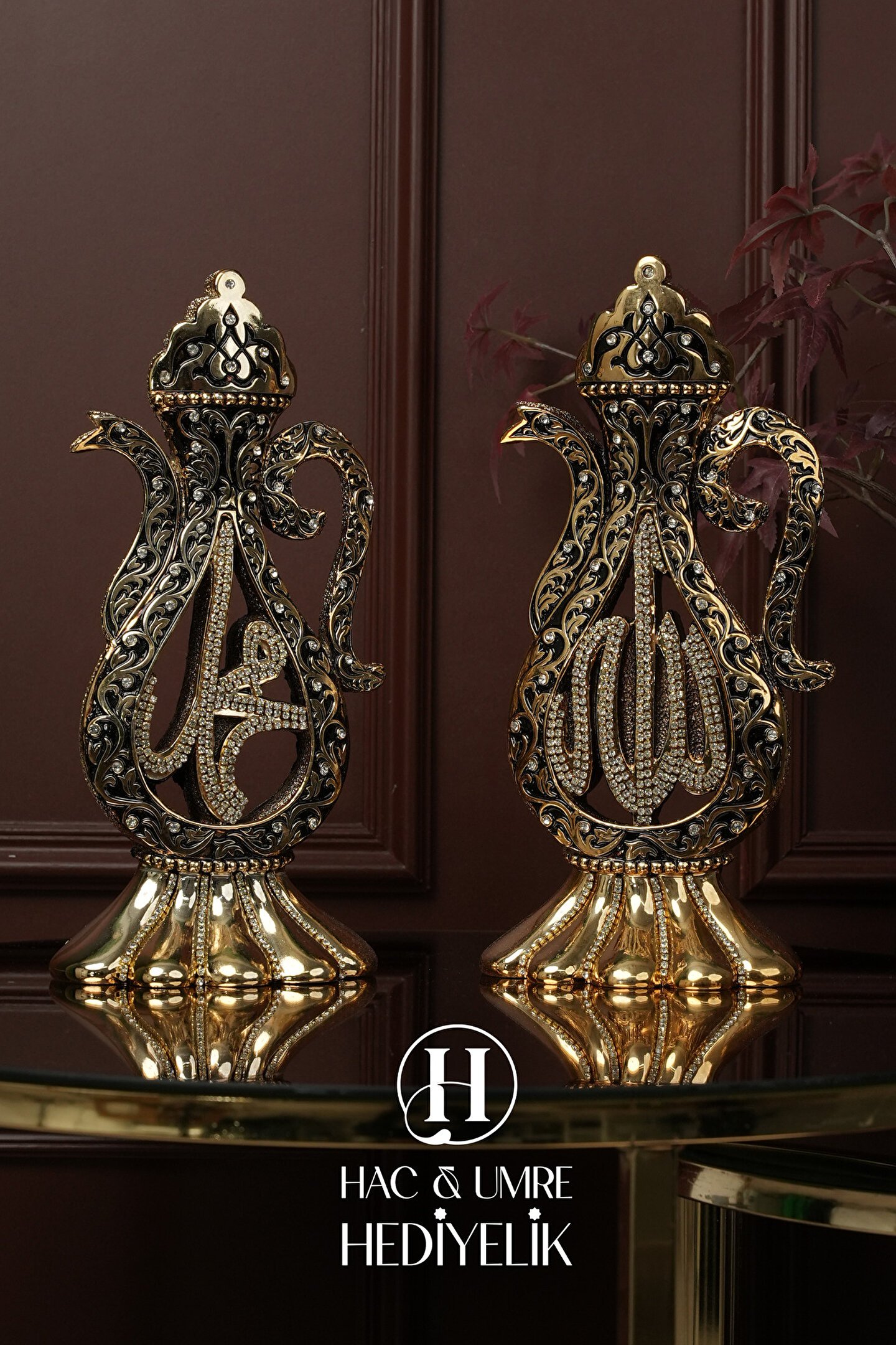 ✨ El Yapımı Allah & Muhammed Kristalli Dekoratif Sürahi Biblo Seti – Sınırlı Üretim