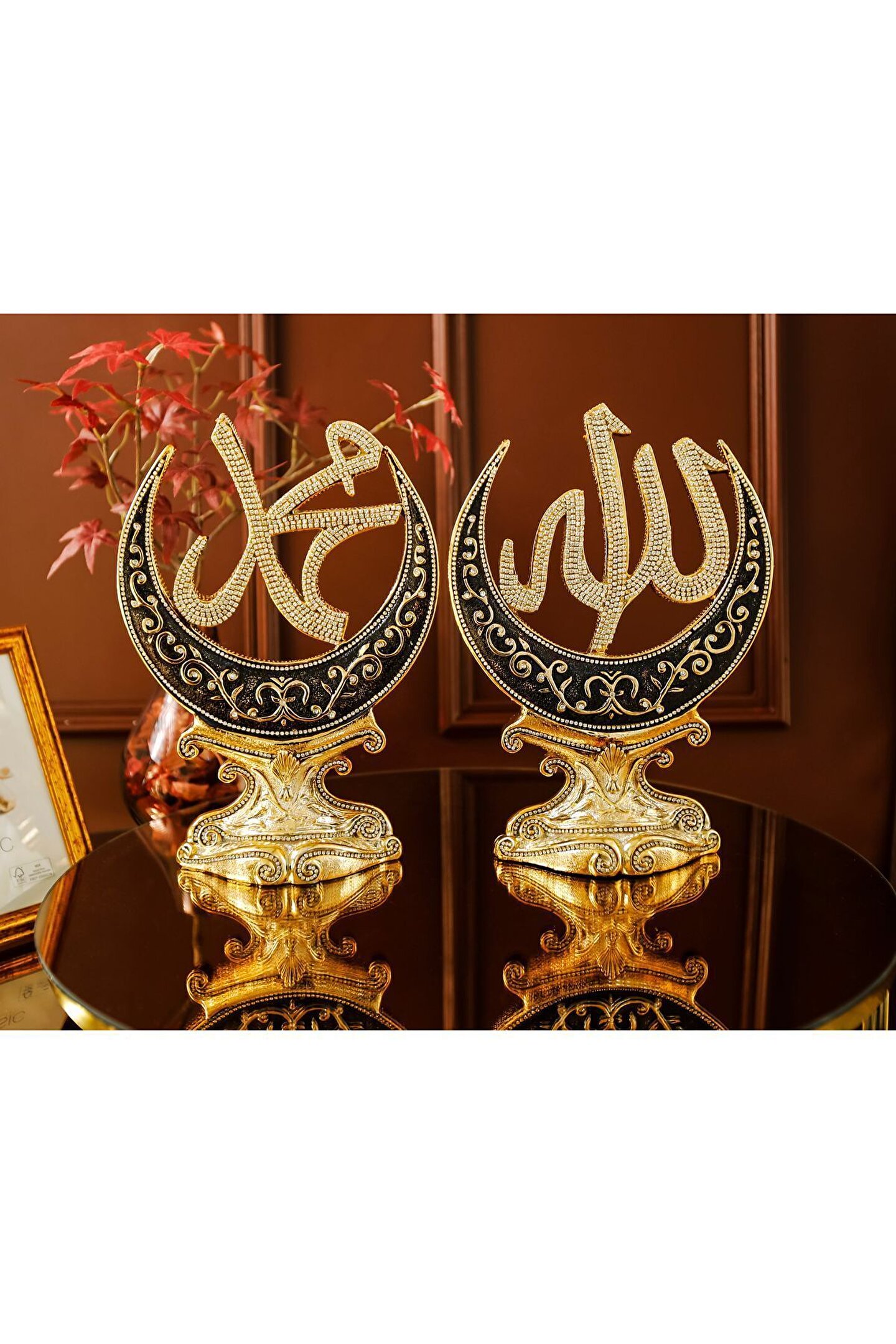 Allah (c; c) ve Muhammed (s; a; v; ) Dekoratif Biblo ? Bu eşsiz biblo, hilal şekliyle gökyüzünün güzelliklerini taşırken, ortasında yer alan Allah ve Muhammed lafzlarıyla derin bir maneviyat sunuyor; Her bir detayı özenle işlenmiş olan bu eser, estetikle mananın mükemmel bir birleşimini sergiliyor; ? Evinizi ve ofisinizi bu özel biblo ile süsleyerek, her bakışta gökyüzünden ilham alan bir atmosfer yaratabilirsiniz; Sevdiklerinizin yaşam alanını bu anlamlı eserle güzelleştirmek için hemen keşfedin! Hemen sipariş için ürün kodu: CN 100 ? Ürün Özellikleri: Orijinal Tasarım El Yapımı ve Yüksek Kaliteli Metalize Sert Polyester Malzeme Altın Kaplama 20x28,5 cm 925+865 gr El İşçiliği ? Kullanım Alanları: Yaşam alanlarına zarafet katmak için, Manevi bir hediye olarak, Dekoratif süs olarak, Anneye, Babaya, Eşe Hediye olarak, Yıldönümü, Doğum Günü, Terfi, Ev ve Ofis Hediyesi Olarak, Bereketin simgesi olması için, Maneviyatı hatırlatması için, Başarı ve sanatsal üretime ilham olması için, Kurumsal hediye ve diğer alanlarda kullanılabilir;