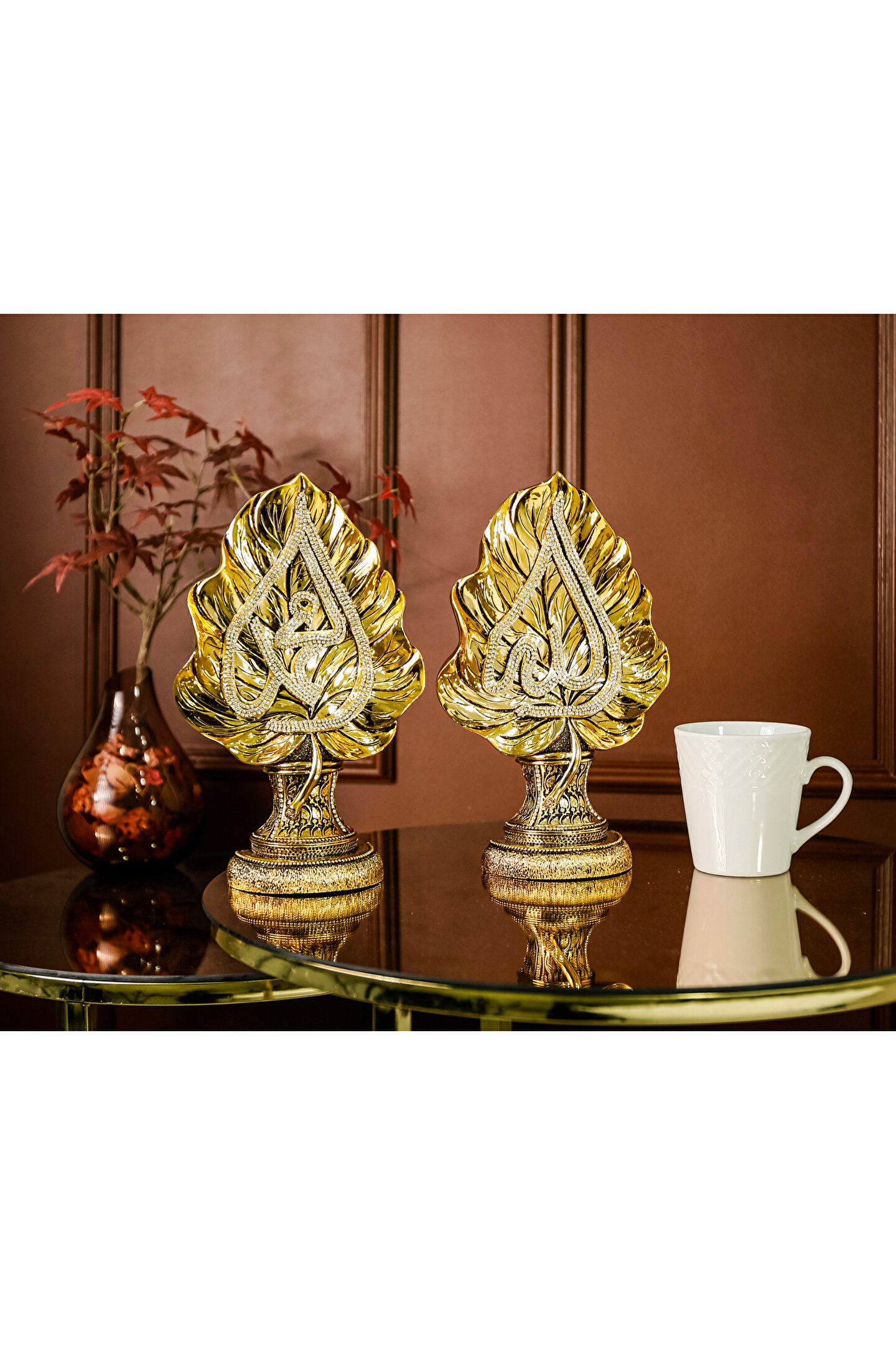Polyester malzeme kullanılarak üretilmiş olup, dayanıklılığı ve uzun ömürlü kullanımı ile öne çıkar; Avangard tasarımıyla modern ve şık bir görünüm sunar, mekanınıza estetik bir dokunuş katar; Hediye olarak tercih edebileceğiniz bu biblo seti, sevdiklerinize özel ve anlamlı bir hediye alternatifi oluşturur; Yaprak ve süslemelerle süslenmiş tasarımı, dekoratif objeler arasında zarif bir seçenek olarak öne çıkar;