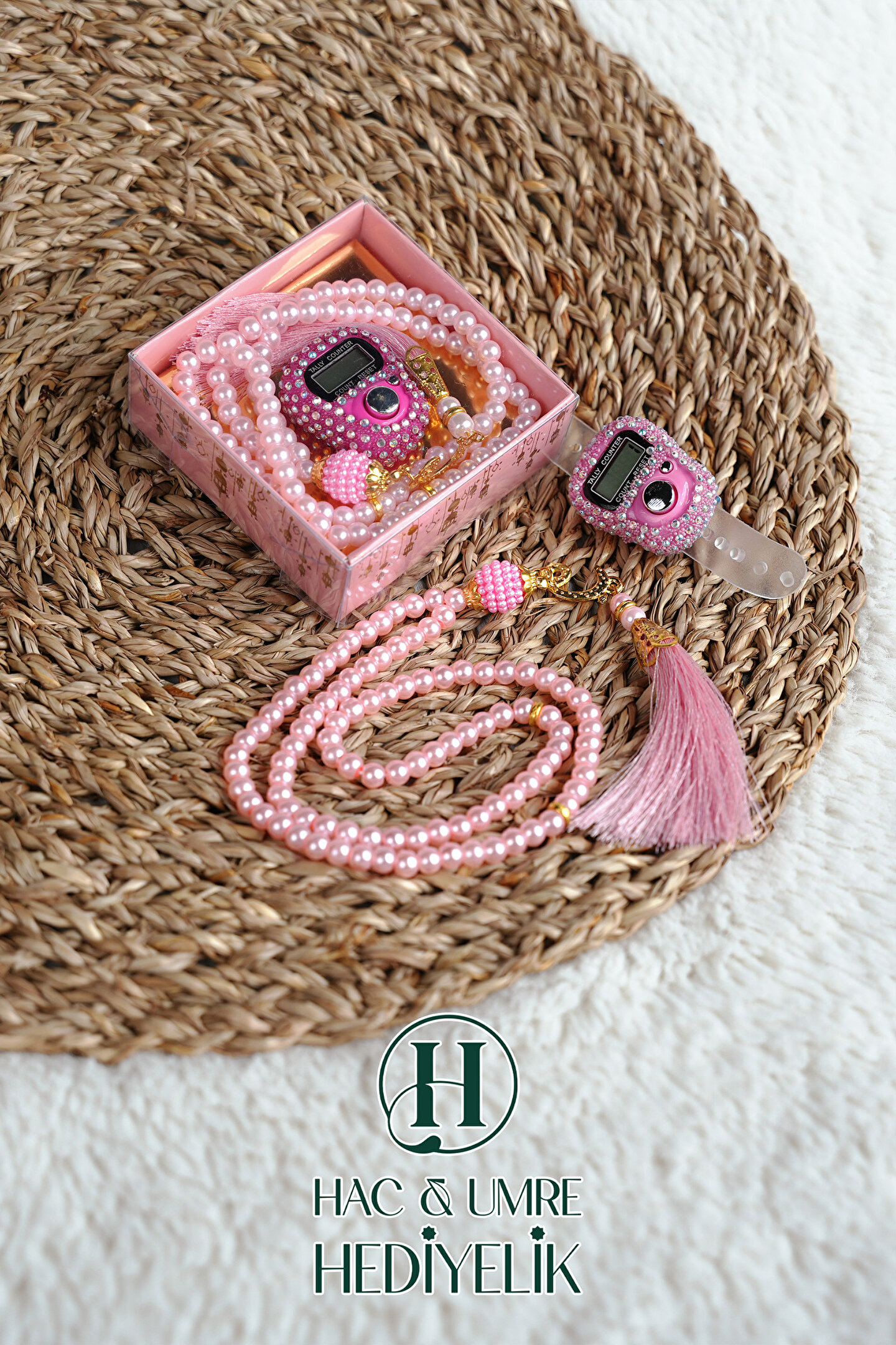 Hac Umre Hediyelik Taşlı Zikirmatik ve İnci Tesbih Seti | Mevlüd Hac Umre Davet Organizasyon Hediyesi | 10 Adet Set