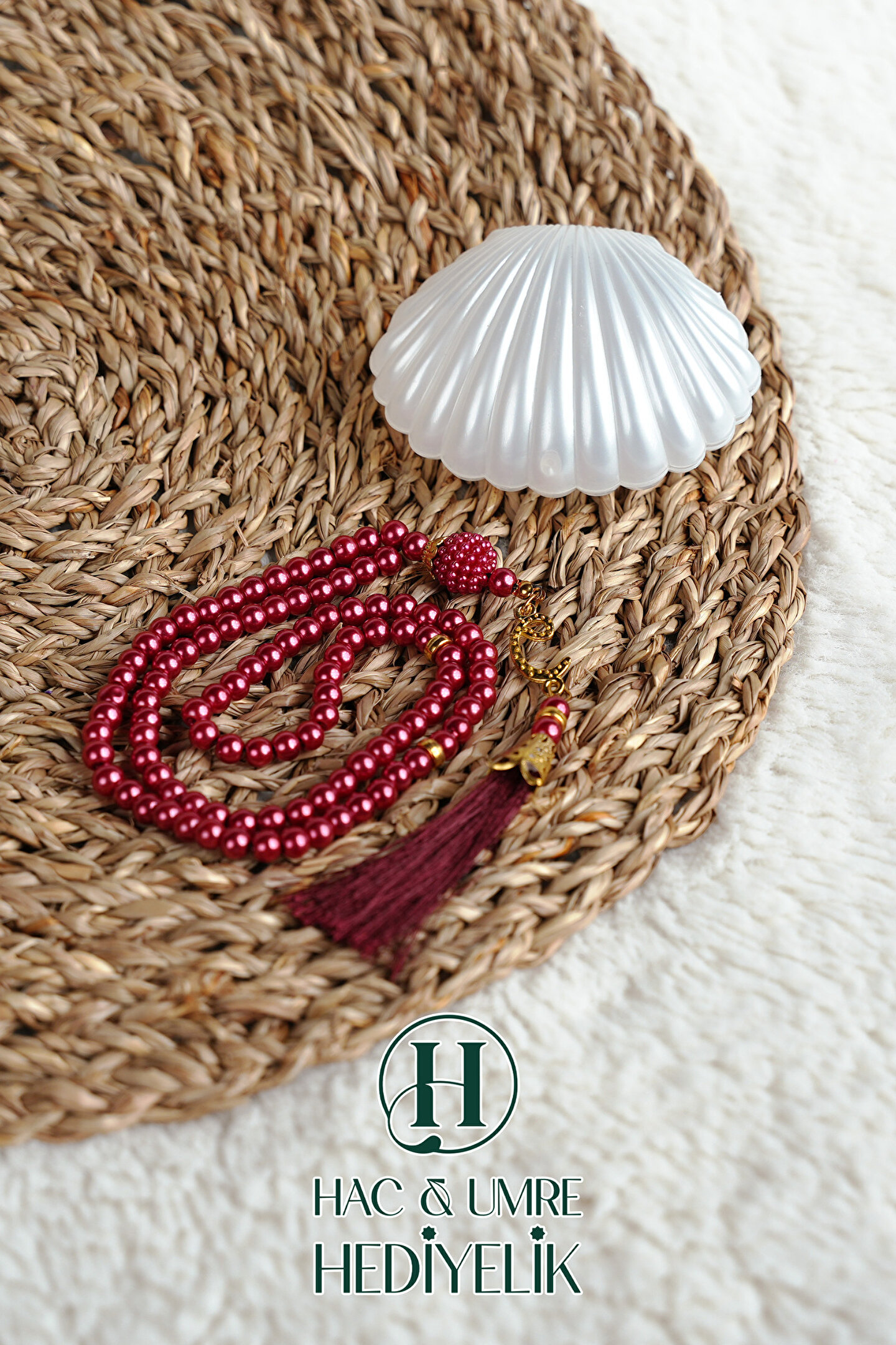 Hac Umre Hediyelik Tesbih Hediyelik | Özel Gün Davet Hediyesi | Deniz Kabuğu Kutulu 99lu İnci Tesbih Vav Süslü Püsküllü
