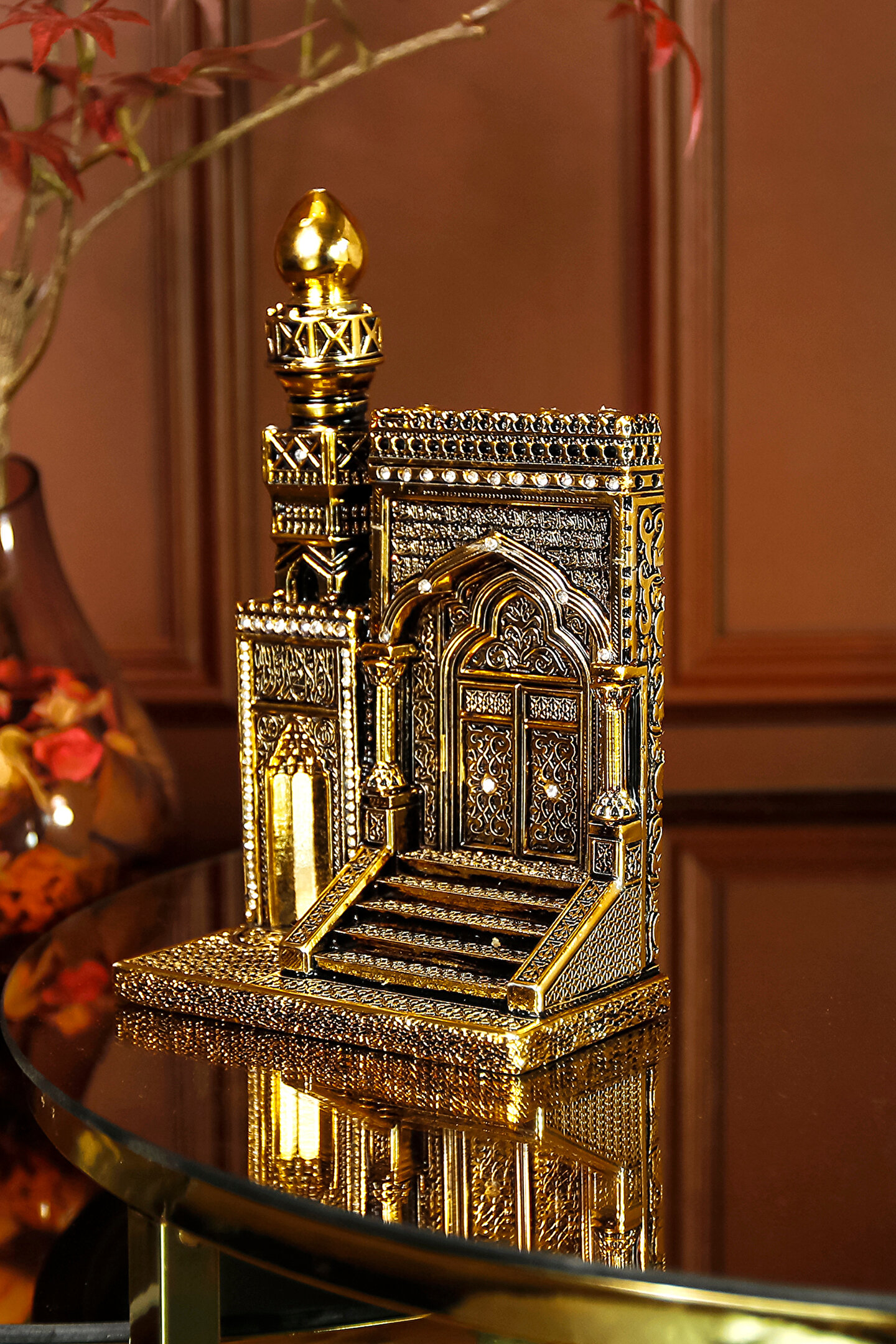 Mihrap ve Minber Motifli Dekoratif Biblo Geleneksel Türk İslam Edebiyatı ve sanatlarının derin simgelerini taşıyan bu eser; evinizi, ofisinizi ya da sevdiklerinizin yaşam alanlarını güzellikle donatmanın ötesinde, mihrap ve minber motifleri ile istikamet üzere olup Allah'a sığınmayı simgeleyerek mekan atmosferinize derin bir anlam katıyor. En güzel hediye seçeneklerinden biri olan ürünümüz, sizlerin ve sevdiklerinizin mekanlarına zarafet katarken bereketin simgesi oluyor. Bu 1. Kalite malzemeden yapılıp özenli el işçiliği ile boyanan bu görkemli eser, mekanlarınızın baş köşesini süslemek için bir tık kadar yakında sizleri bekliyor.