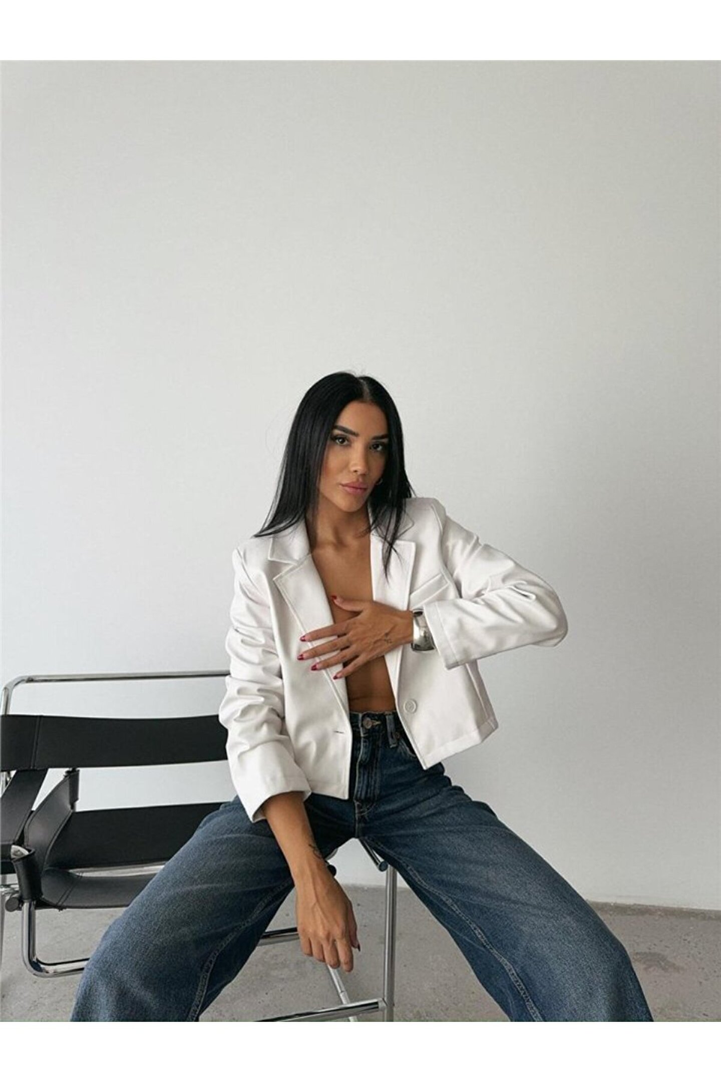 HanZone DERİ CROP CEKET TEK DÜĞME - Beyaz