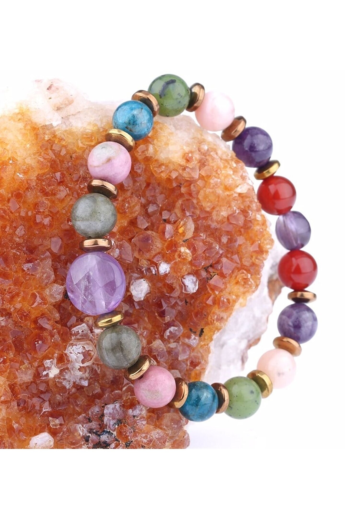 Doğal taş bileklik, her biri benzersiz ve eşsiz bir görünüm sunan ametist, apatit, akik, hematit, labrodite, yeşim ve jasper gibi farklı türlerdeki doğal taşlardan oluşur; 8 mm boyutundaki bu bileklik, zarif ve şık tasarımıyla dikkat çekerken, doğal taşların eşsiz renk ve desenleriyle göz alıcı bir aksesuar deneyimi sunar; Doğal taş materyali sayesinde her bileklik, doğanın saf güzelliğini ve estetiğini bileğinizde taşımanızı sağlar;