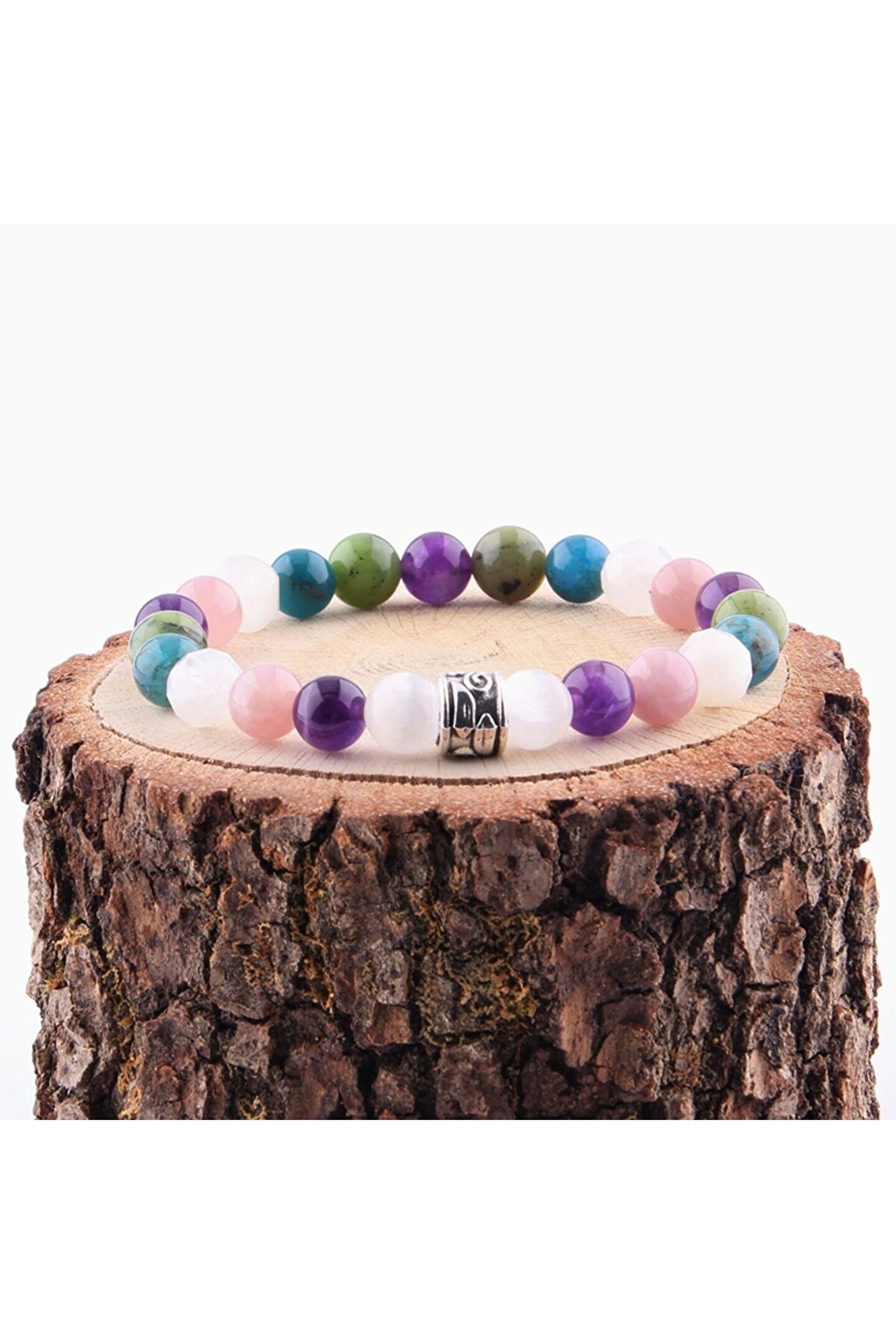 Haremi Selenit Ametist Pembe Kuvars Ay Taşı Apatit -yeşim Doğal Taş 8 Mm Bileklik