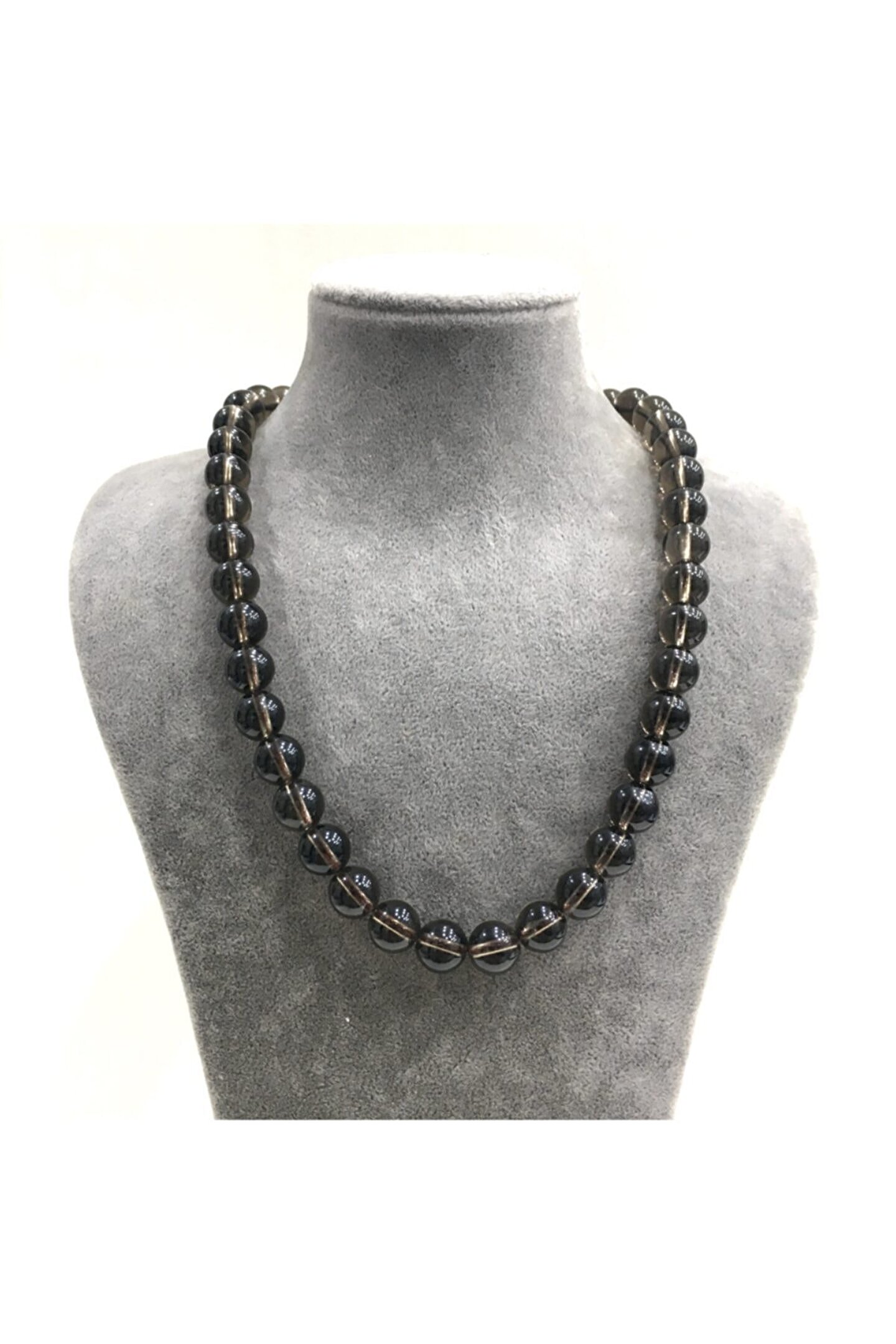 925 Ayar Gümüş Klipsli Doğal 8mm Dumanlı Kuvars Taşlı Kolye Hsg0918
