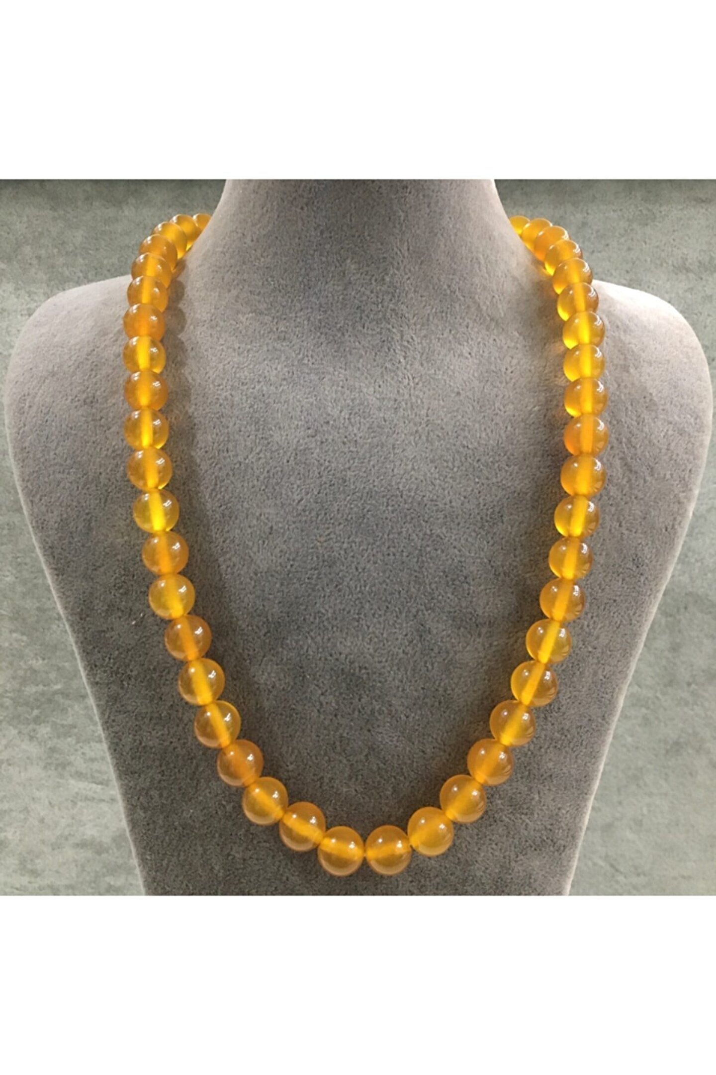 HAS İNCİ Gümüş Klipsli Doğal Sarı Akik Taşlı Kolye Sa350a